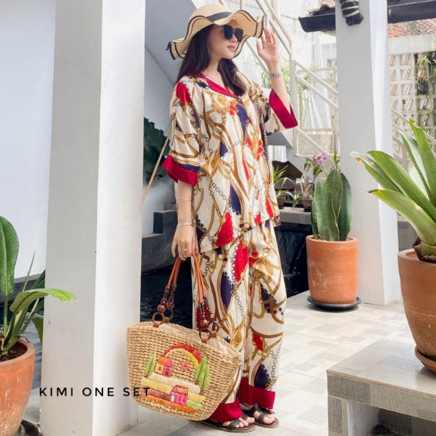 Kimi One Set Setelan Daily Wanita Motif Terkini Bahan Adem Setelan Pajamas Terbaru Daily Yayuku