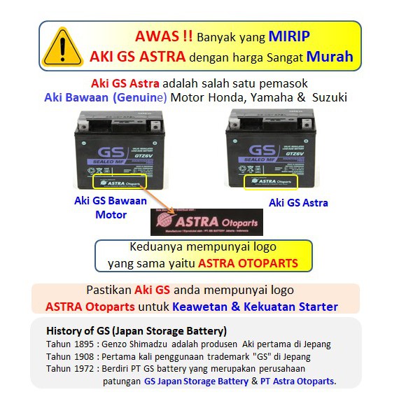 Aki Motor GS ASTRA MF GTZ-6V Vario 125 Vario 150 PCX Mio SSS dll