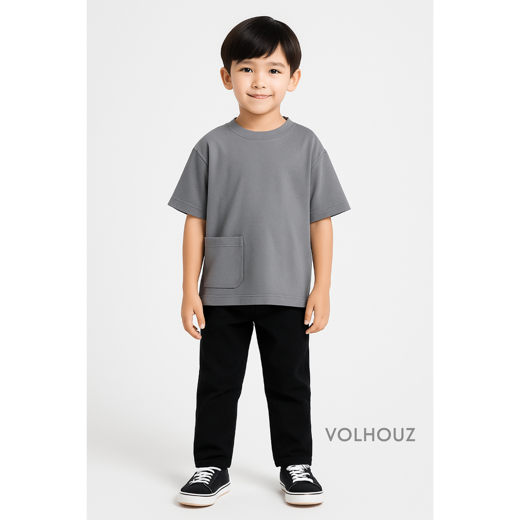 Kaos Anak Oversize Polos Pocket Bahan Cotton Combed 28s unisex | Kaos Oblong Lengan Pendek Adem