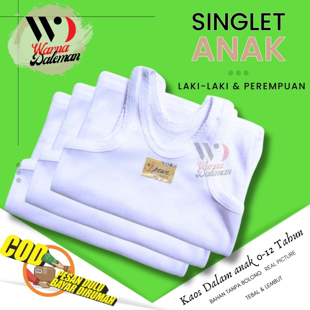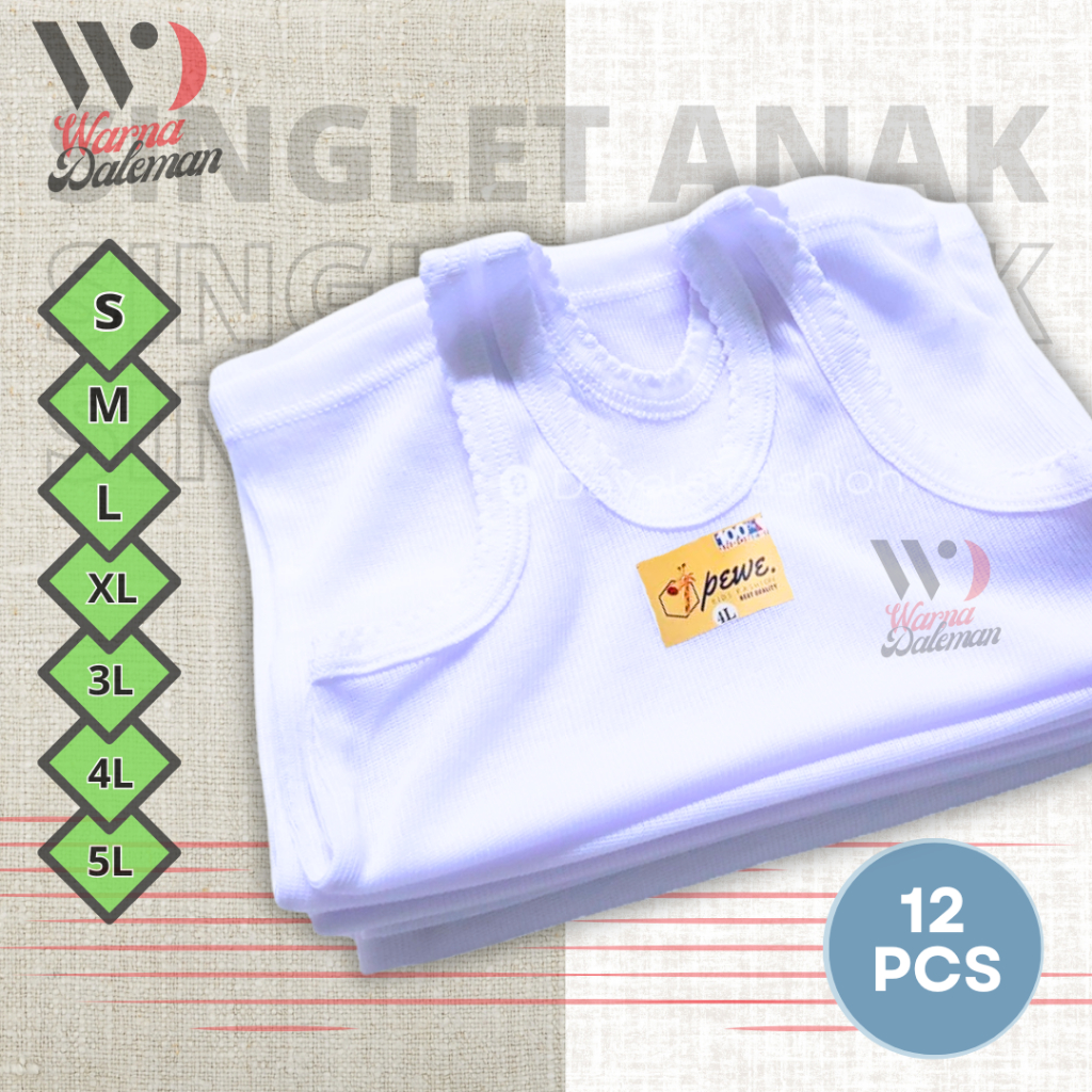 Singlet Murah 12 Pcs Singlet Anak Putih Warna Daleman Bahan Katun Tanpa Bolong Untuk Anak Laki-laki dan Perempuan B