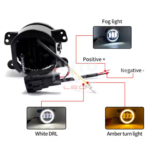 【AutoLume】2 Pieces Lampu Foglamp LED 4 Inch | 3 Lensa Full Ring | 2 Warna (Putih & Kuning) | 60W | Cocok untuk Off-Road, Motor, Mobil& Jeep Wrangler