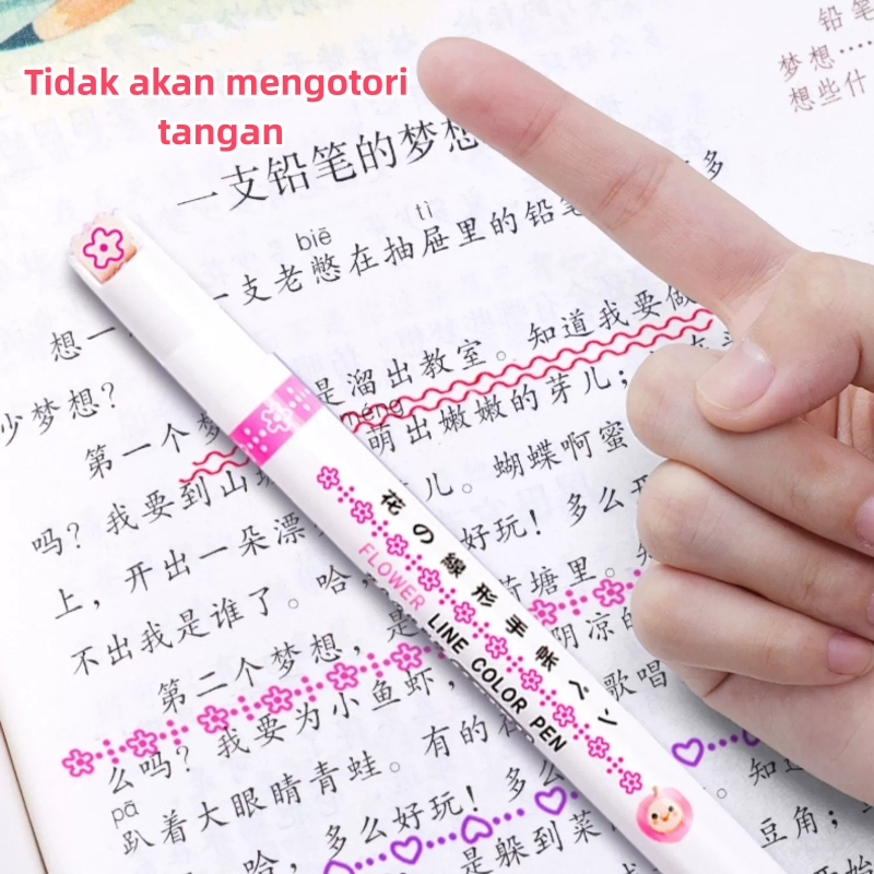 VOOVA Flower Shaped Outline Pen Curve Pen Marker Pen Cepat Kering Stabilo Color Pen