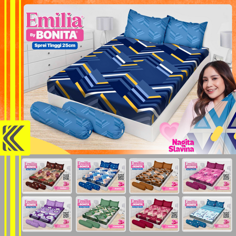 Sprei Emilia Bonita Motif King Queen 180x200 160x200 Premium Nyaman Halus Adem Elegan Murah