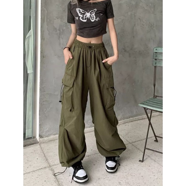 4boys- celana kasual harajuku kargo Teachwear Stretwear pria wanita