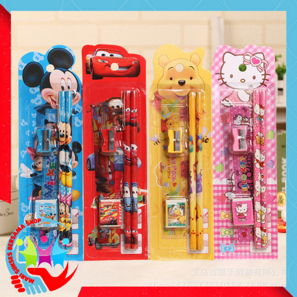 MSBS Stationery Set 5 in 1 Alat Tulis Anak Sekolah Penghapus penggaris Pensil Serutan Karakter Lucu t
