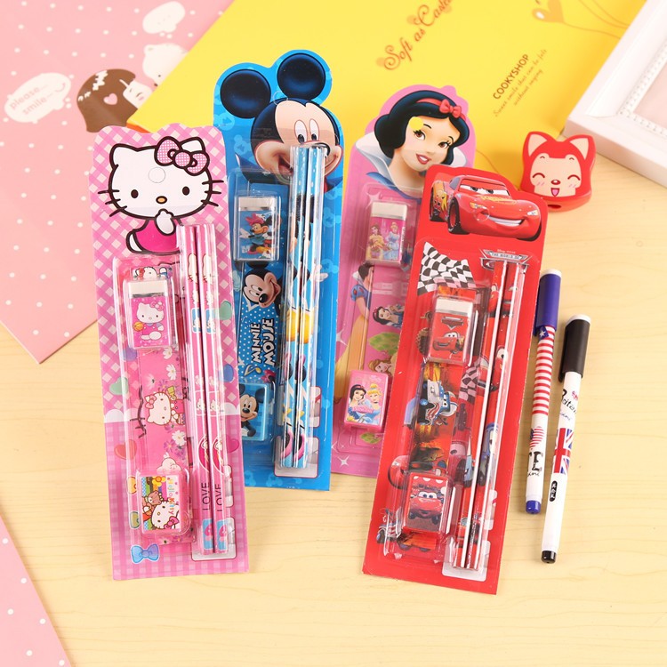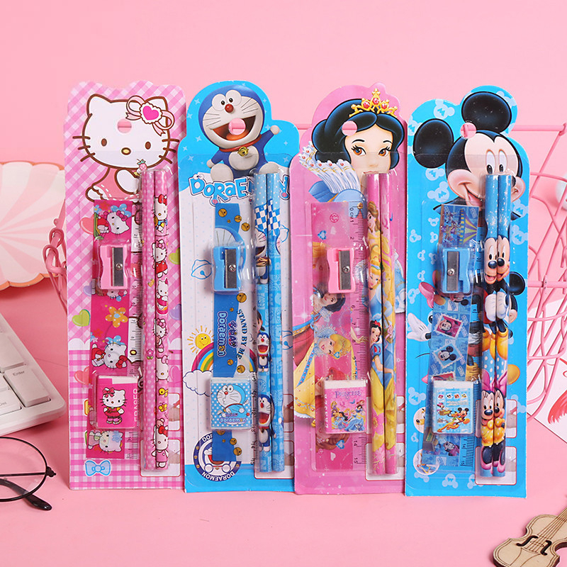 Set Alat Tulis 5in1 Pensil Set Anak Pensil Lucu Dan Penghapus Untuk Tempat Pensil Buku Tulis Sekolah