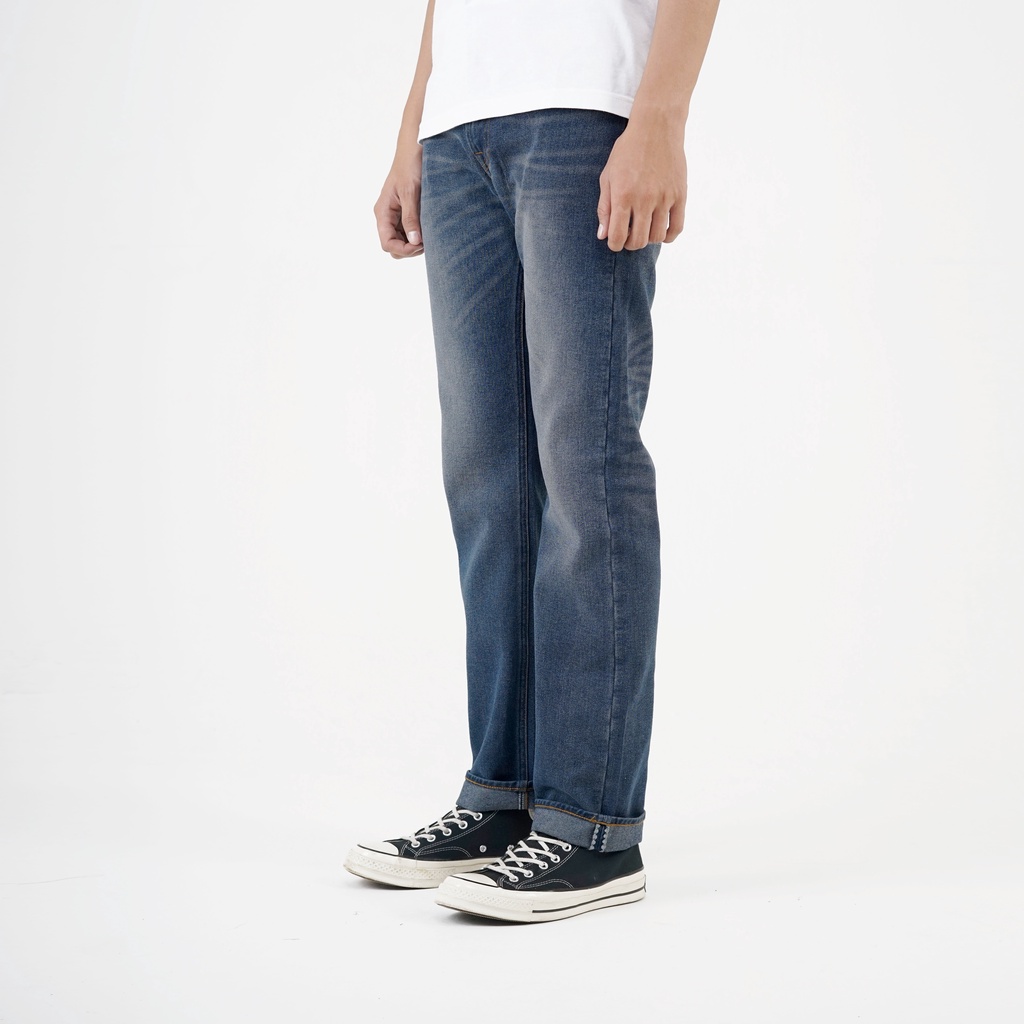 Volkvog Jeans Orleans Celana Panjang Washed Denim Pria Slim Straight Biru