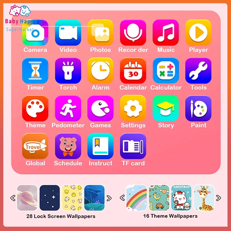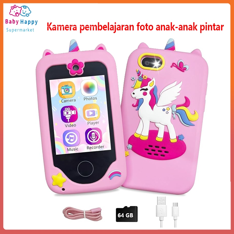 ZC 64GB Mainan Kamera Anak-anak Layar Sentuh Mainan Pembelajaran Pemutar MP3 Mainan Pembelajaran dengan Kamera Ganda Hadiah Ulang Tahun untuk Anak Laki-laki dan Perempuan Usia 3-12 Tahun