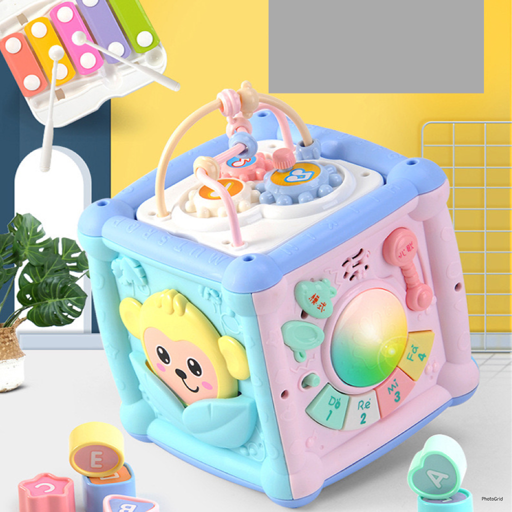 HAPPYTOYS.888 #B89 7 in 1 Wisdom Busy Box Mainan Edukasi Anak Bayi Kotak Musik Baby Rattle Puzzle Abjad Sensorik Motorik