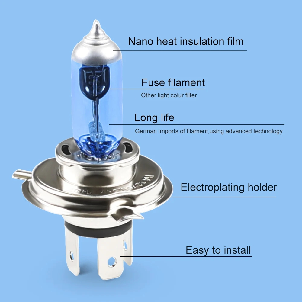 X.AUTO 1/2 Buah H4 12V 60/55W Bohlam Halogen Mobil 12V Lampu Depan Putih Super Xenon