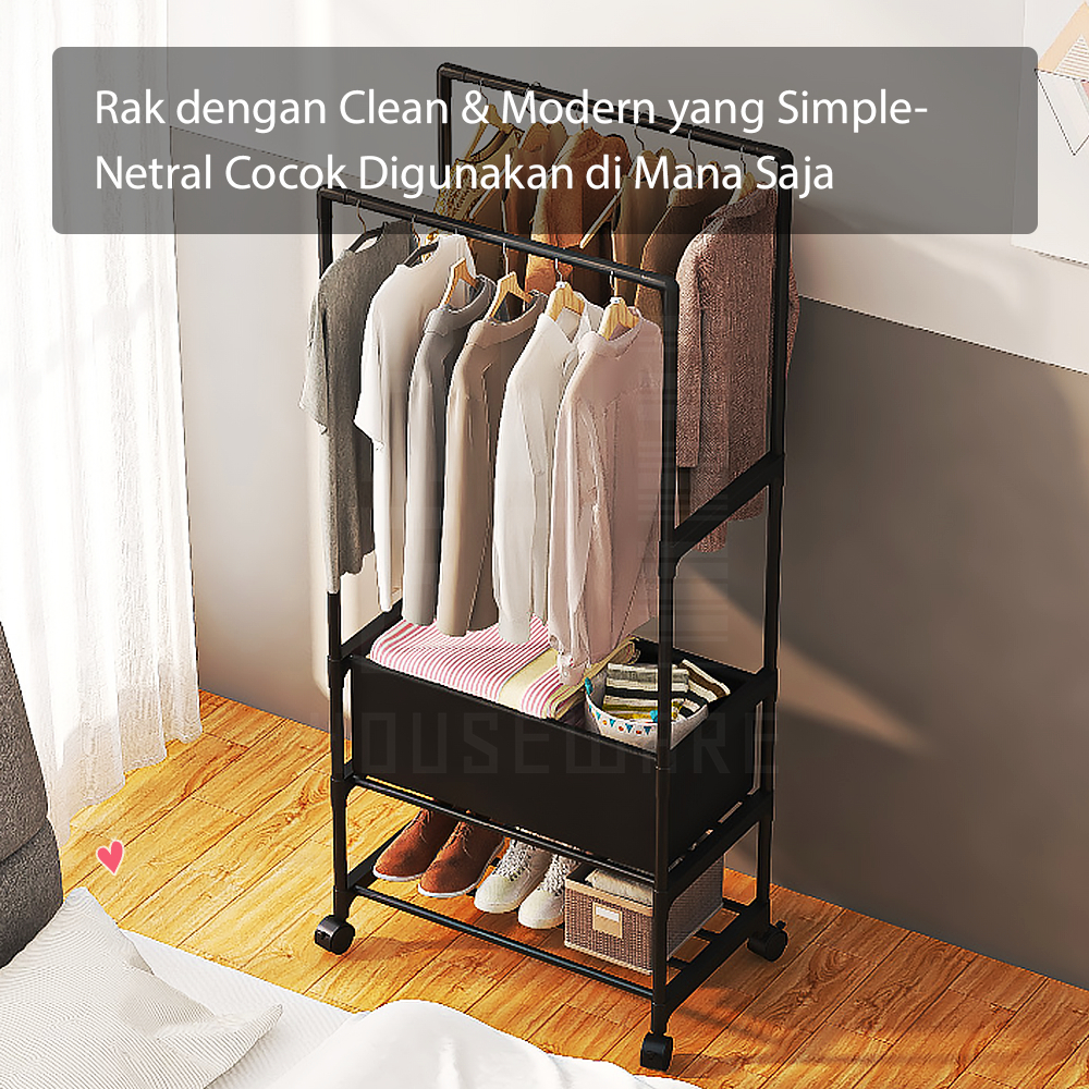 HUGO Stand Hanger / Gantungan Baju / Gawangan Baju / Gantungan Pakaian / Rak Baju / Gantungan Rak Baju Portable / Rak Gantungan Pakaian Serbaguna Jemuran Baju Rak Gantung Pajang Premium