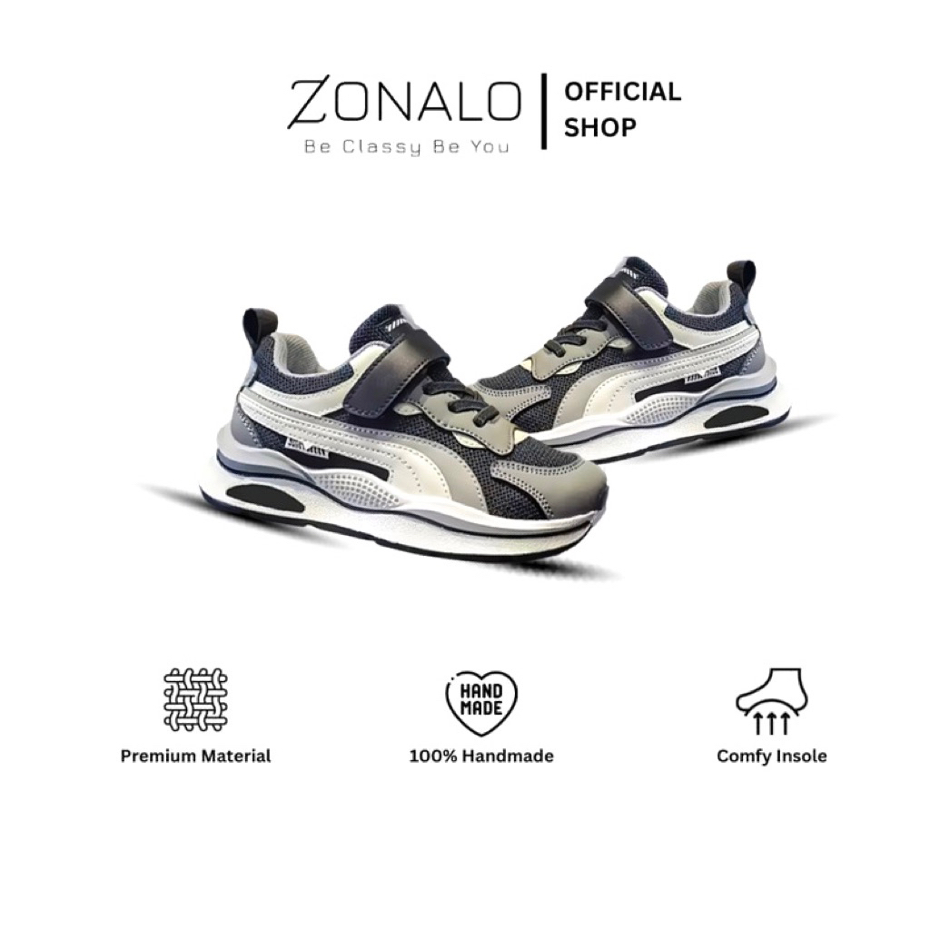 Zonalo kids wear Sepatu anak laki-laki dan perempuan unisex sepatu SNEAKERS ANAK QN HITAM