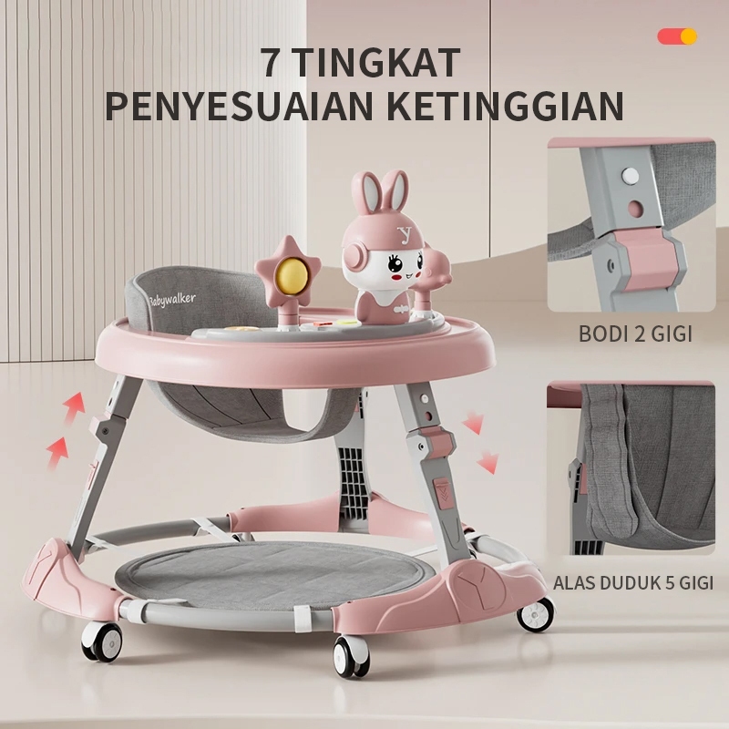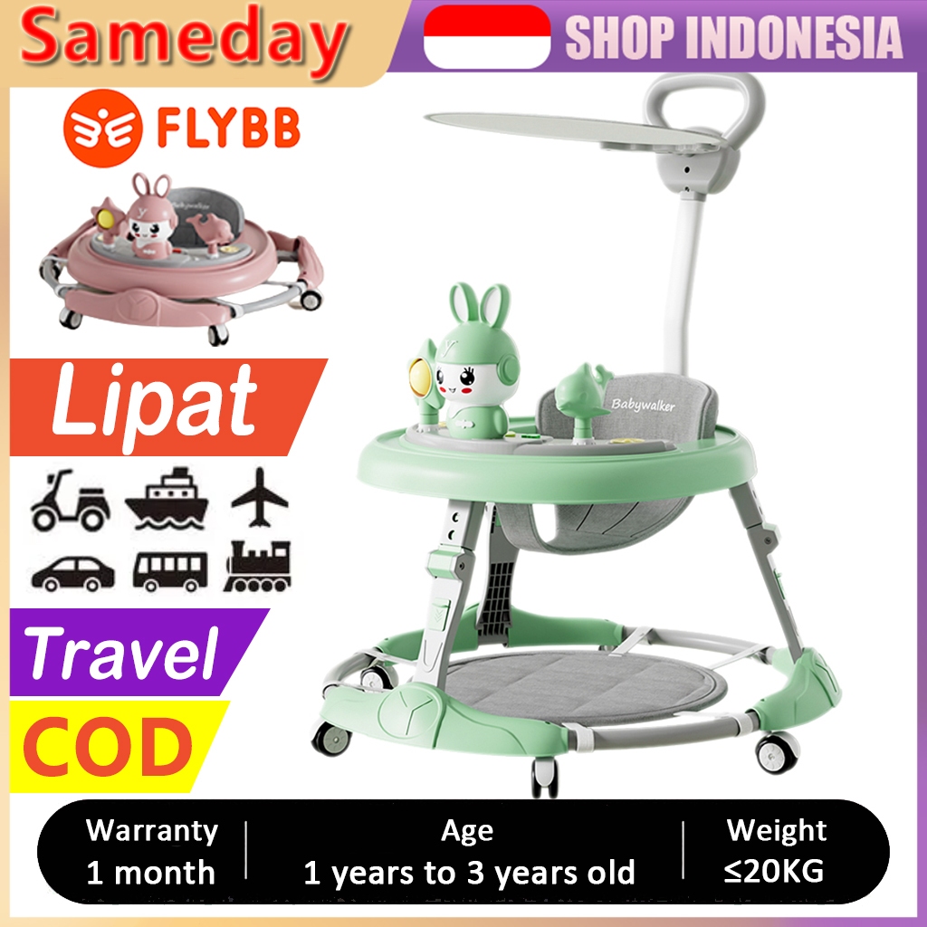FLYBB Baby Walker Dengan Sandaran Tangan, Kanopi Dan Pijakan Kaki