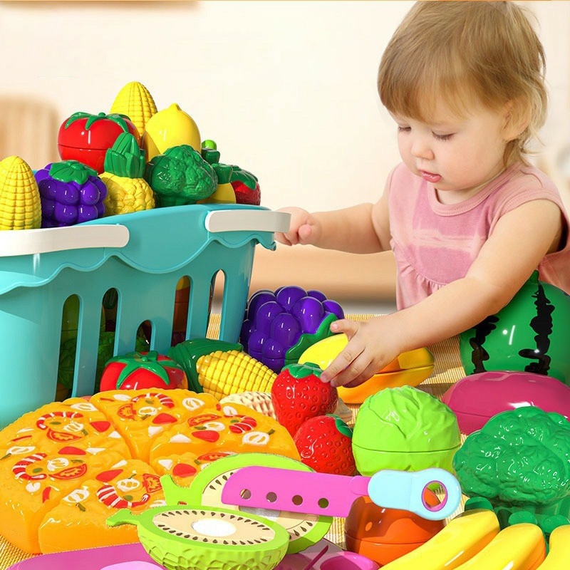 POPTOYS 26/75 PCS Mainan Dapur Simulasi Makanan Set Mainan Potong untuk Anak Game Memotong Buah Dan Sayur Mainan Buah Yang Dapat Dikupas Mainan Edukatif untuk Anak