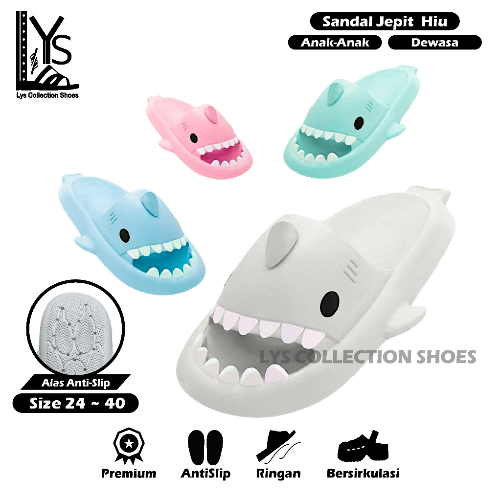 Sandal Slop Unisex Anak dan Dewasa Motif Hiu Shark Bahan Karet EVA Cuci Gudang