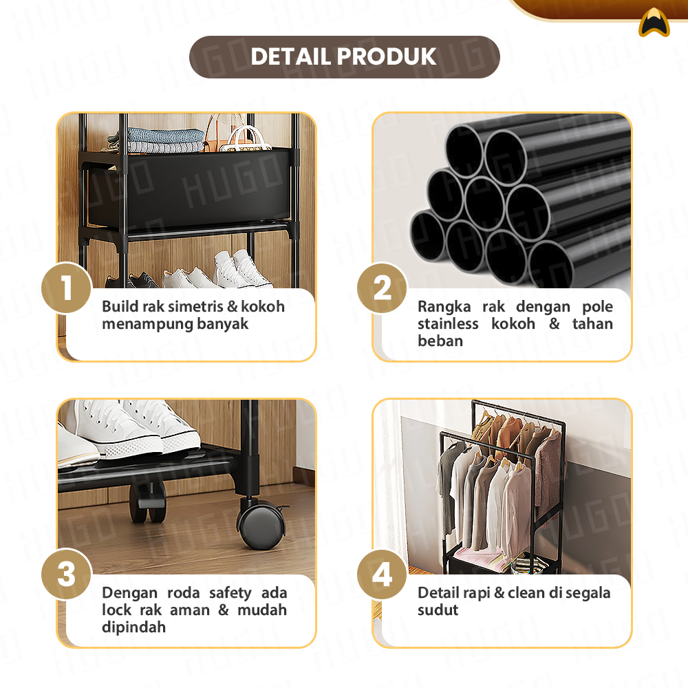 Hugo Houseware Stand Hanger Gantungan Baju Gawangan Gantungan Pakaian Rak Baju Portable Serbaguna