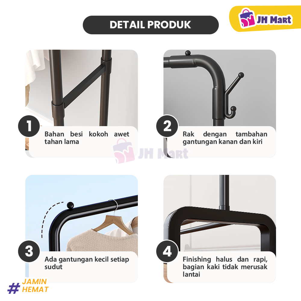 JHM - Rak Gantung Baju Stand Hanger Besi Jemur Baju Kuat Multifungsi Premium