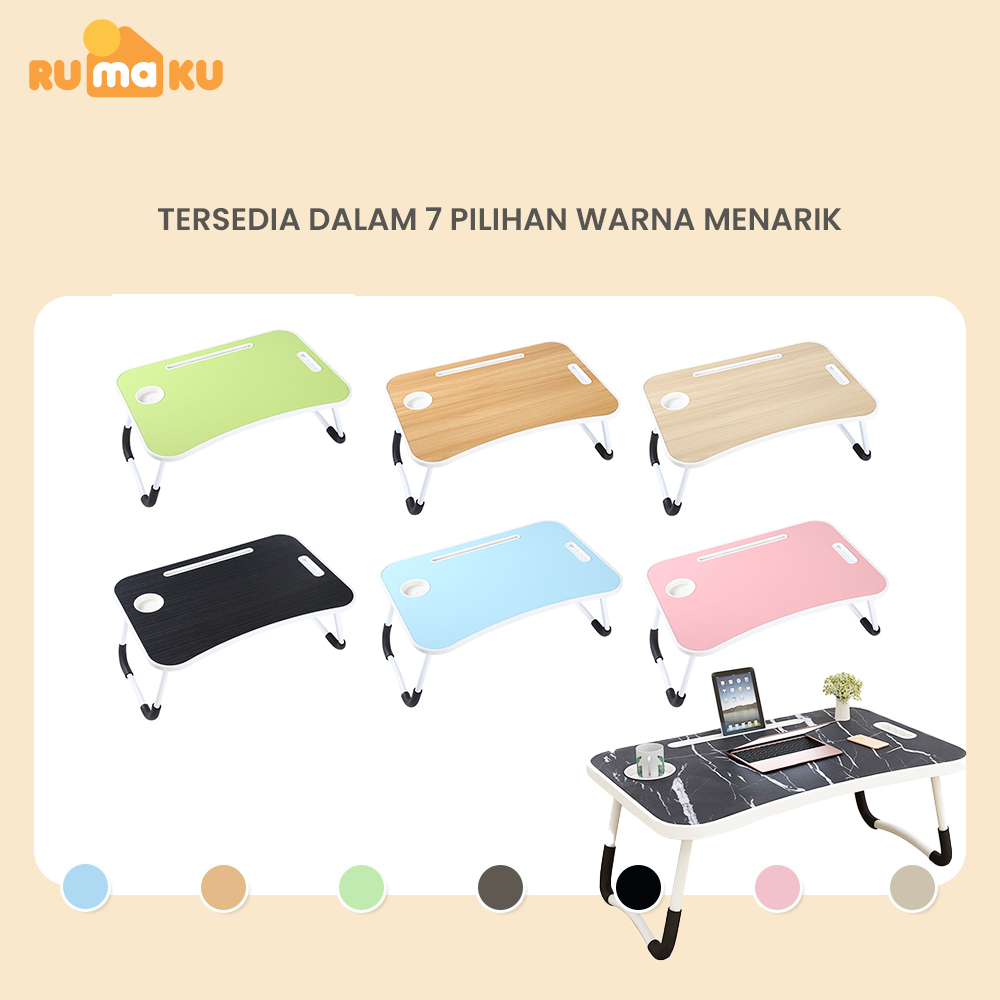 Rumaku Meja Lipat Belajar Laptop Jumbo Ukuran 60x40 Cm Dengan Handle Motif Polos Anti Slip Bahan Kayu Kokoh Berkualitas