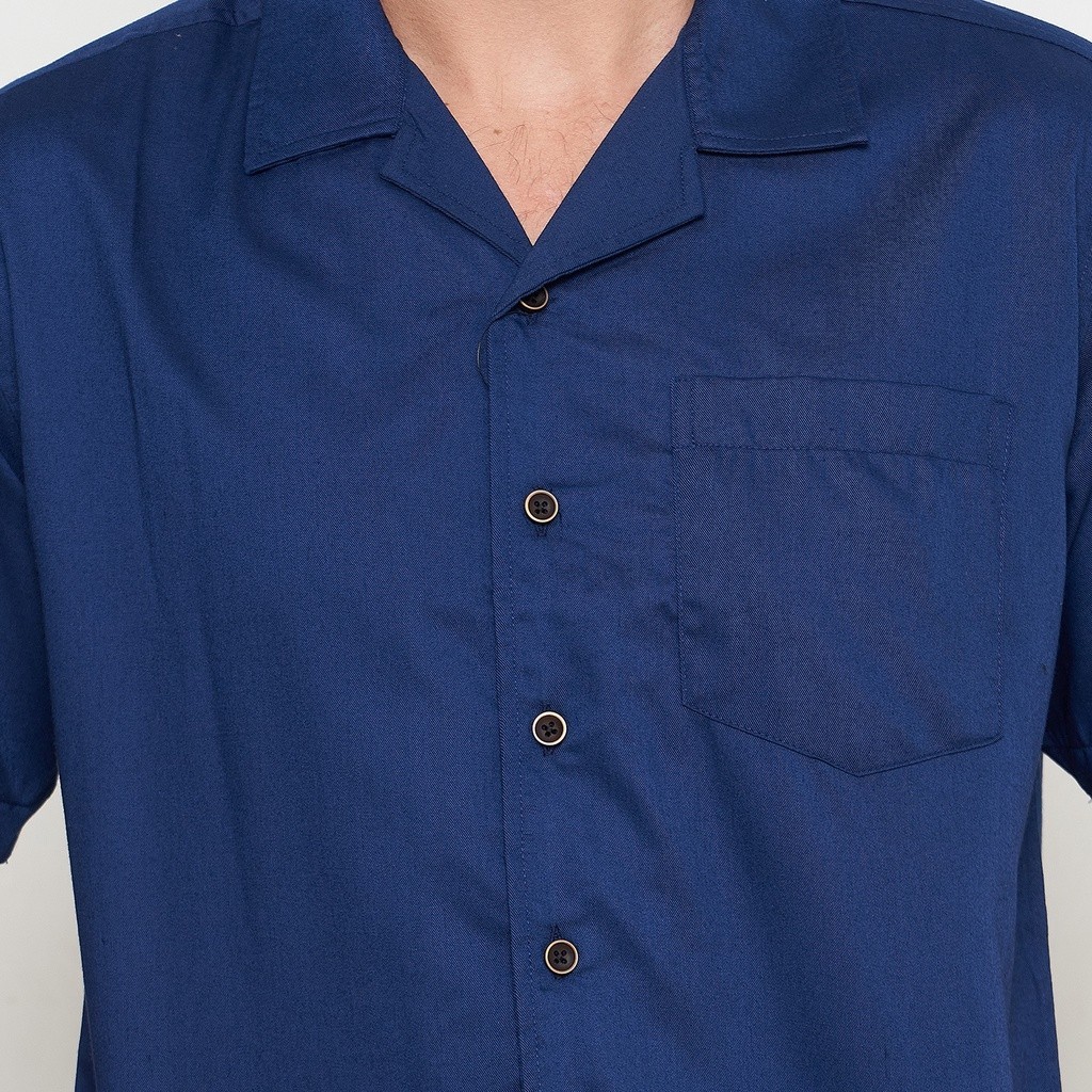 Kemeja Pria Basic Polos Hawaii Lengan Pendek Warna Navy OLR096