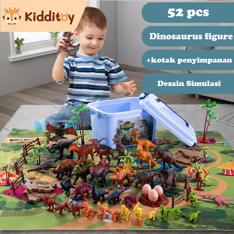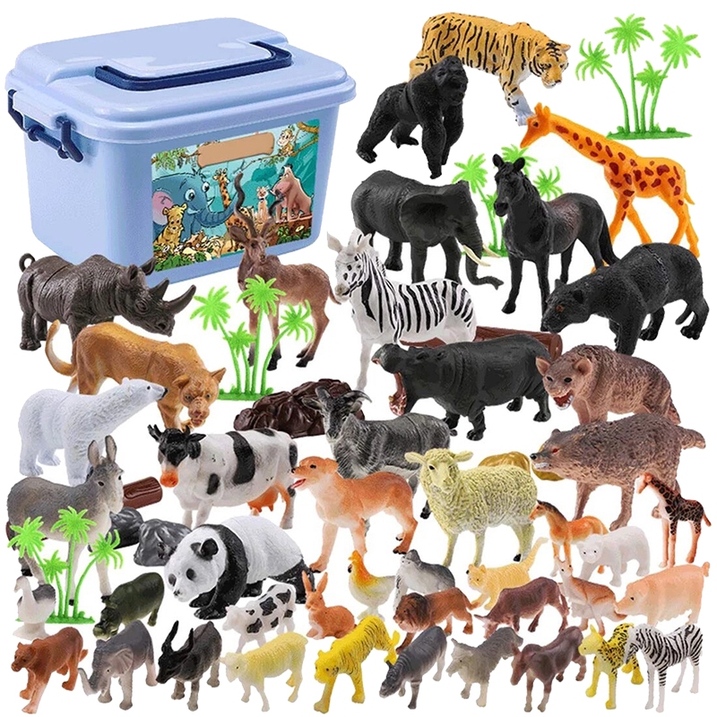 Kidditoy 60 Pcs Mainan Hewan Karet Miniatur Binatang Liar Animal Figure Set dengan Kotak Penyimpanan