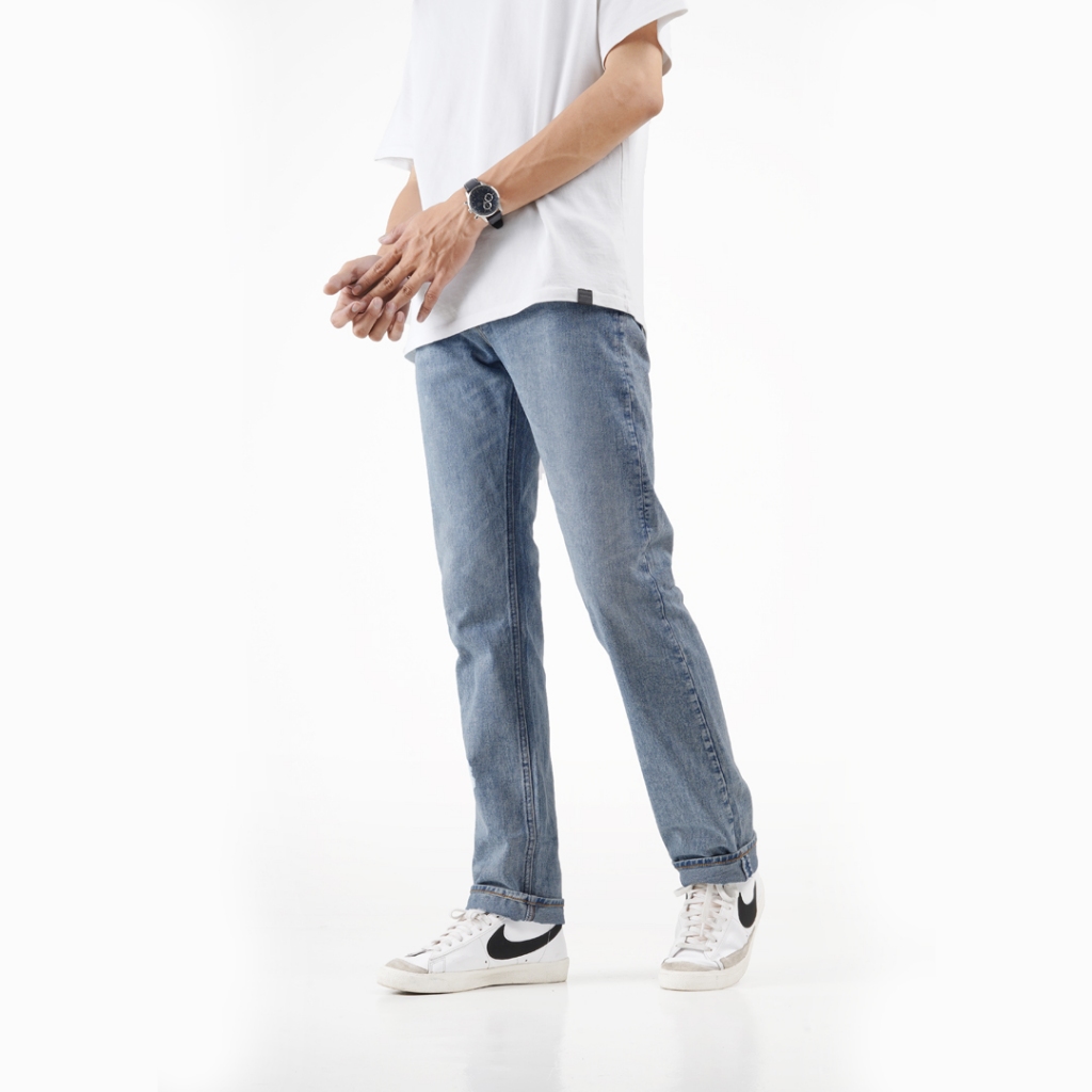 Volkvog Jeans Light Blue Celana Panjang Washed Denim Pria Slim Straight Biru