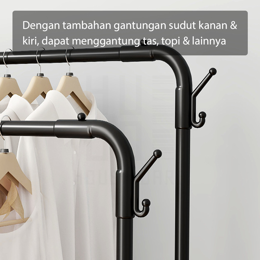 HUGO Stand Hanger Gantungan Baju Berdiri Bahan Besi Tempat Gantung Baju Gawangan Baju Rak Baju Serbaguna Premium Quality