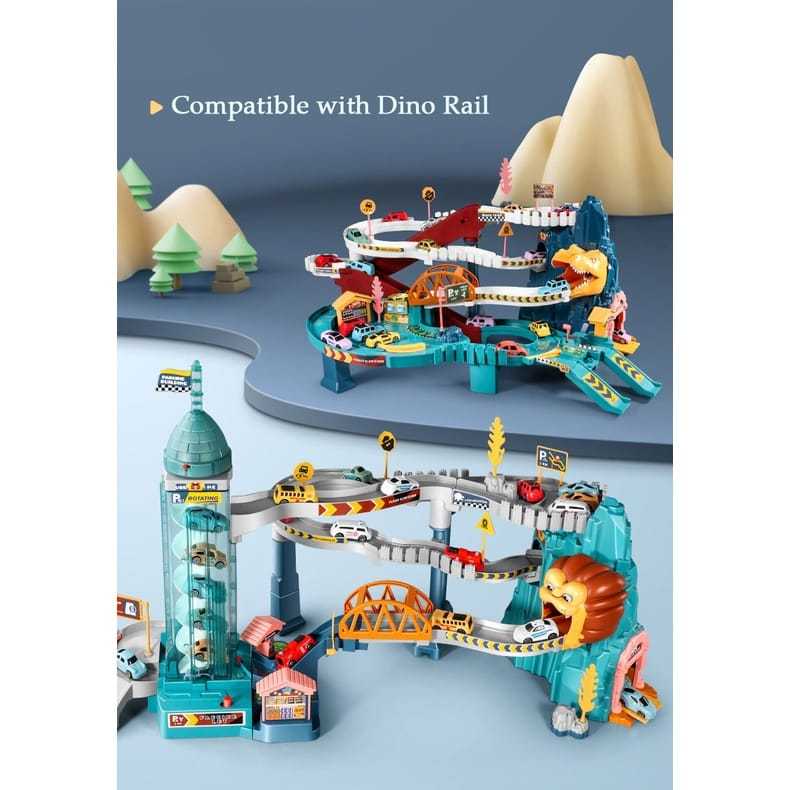 [FISHER] Parking lot DINO dan LION | Mainan Parking lot | Mainan Mobil anak