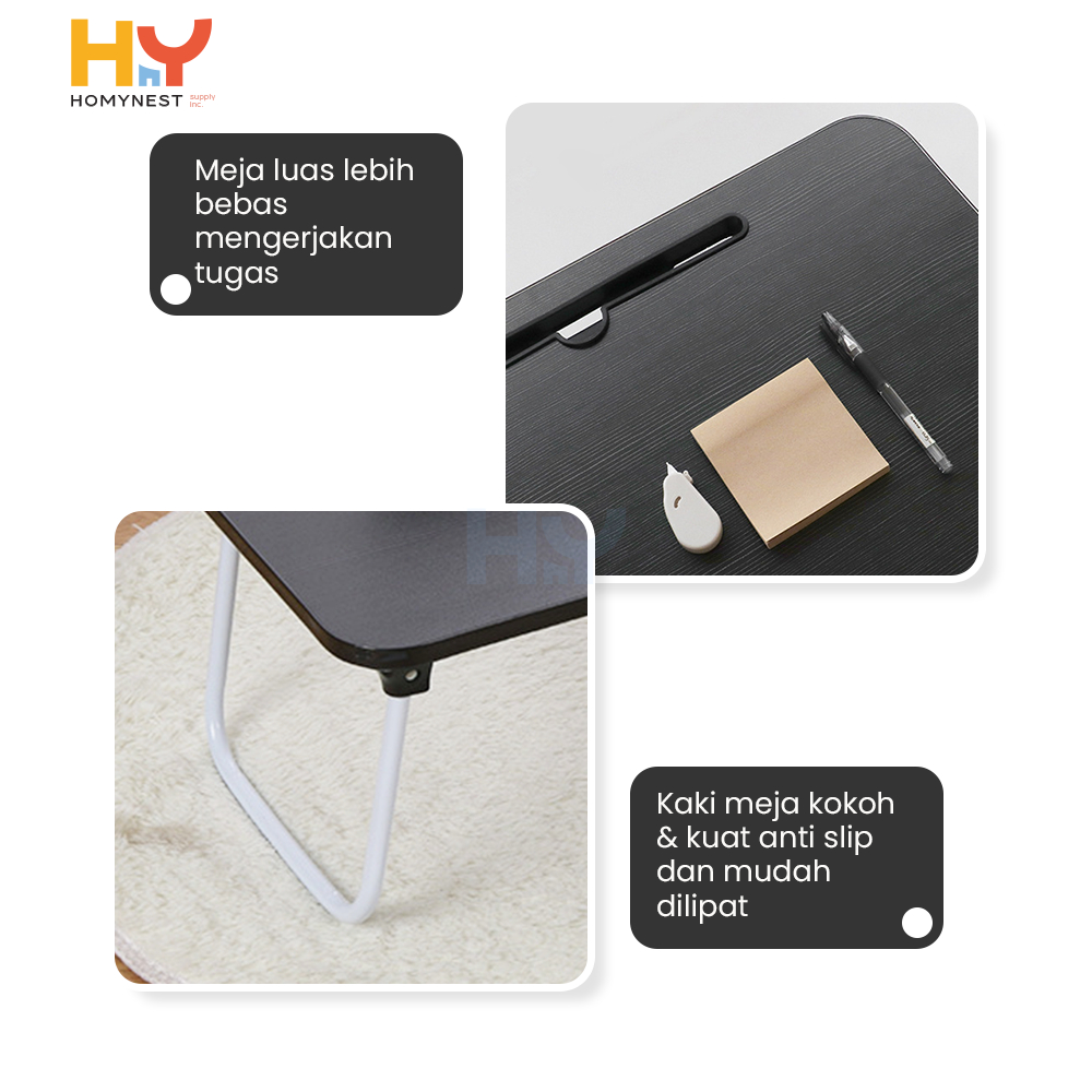 HOMYNEST Meja Laptop Lipat Portable Meja Belajar Kayu HPL Kaki Besi Kokoh Berkualitas