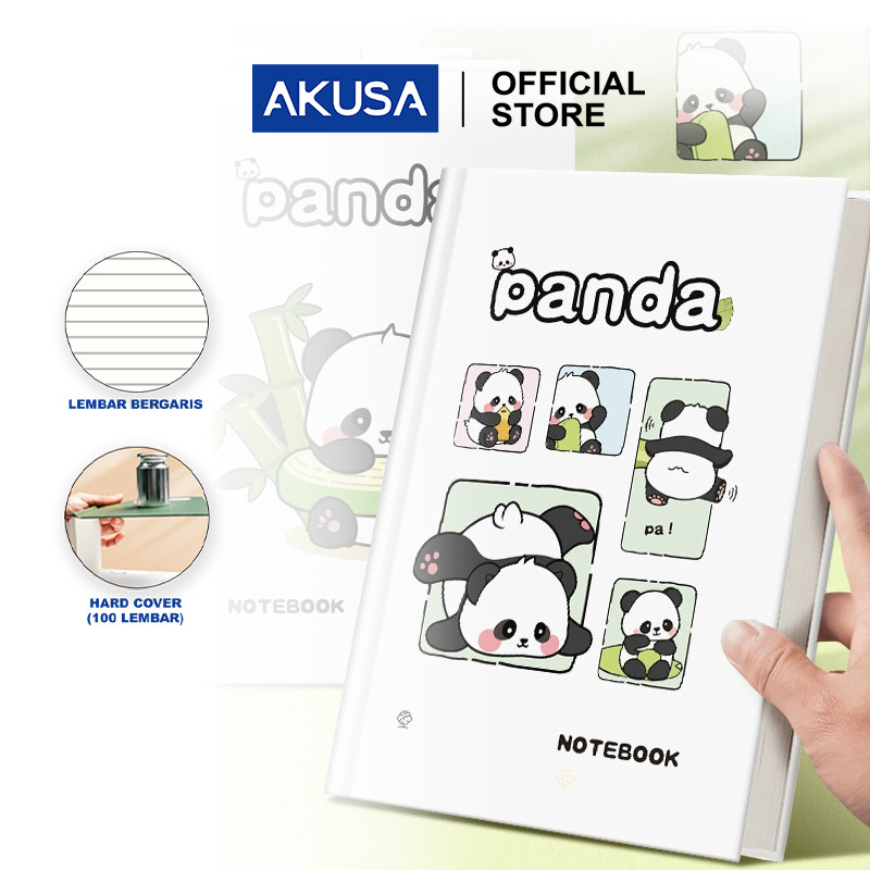 AKUSA Hard Cover Book A5 Note Book Buku Catatan Journal Book Planner Kertas Tebal Tidak Tembus Panda Edition HCB002