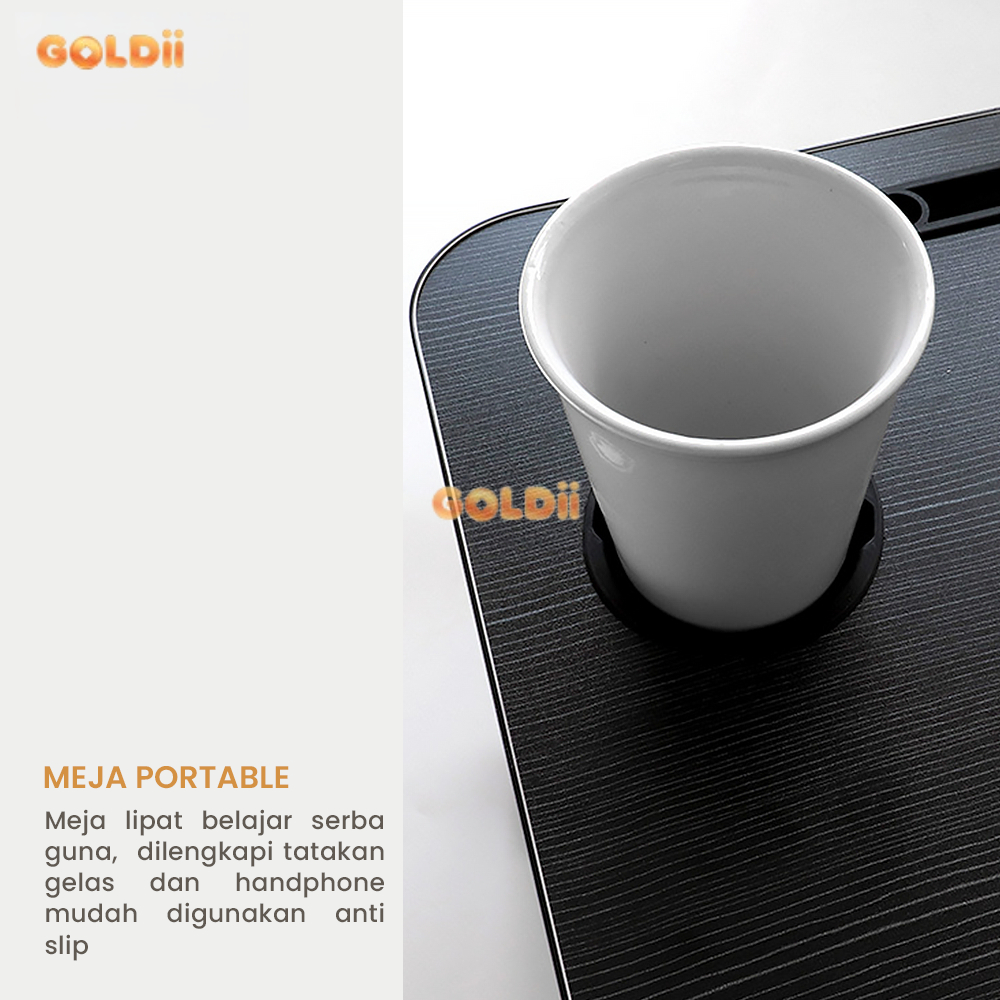 GOLDII - Meja Lipat Belajar Laptop Anak Ngaji Lesehan Bahan Kayu HPL Kaki Besi Kokoh Berkualitas