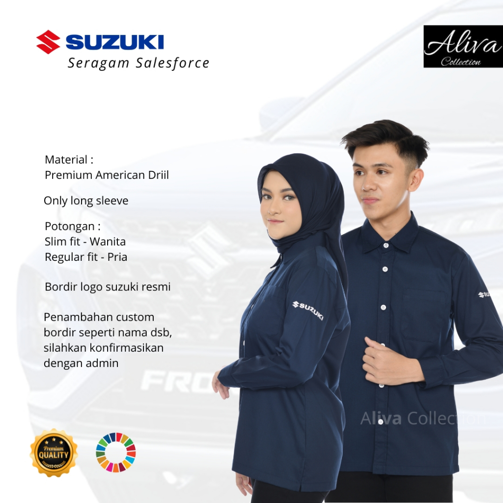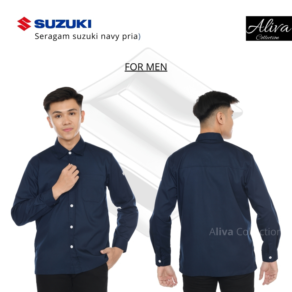 Kemeja Kerja Pria Wanita | Suzuki Navy Terbaru |Tangan Panjang |Seragam Marketing Suzuki