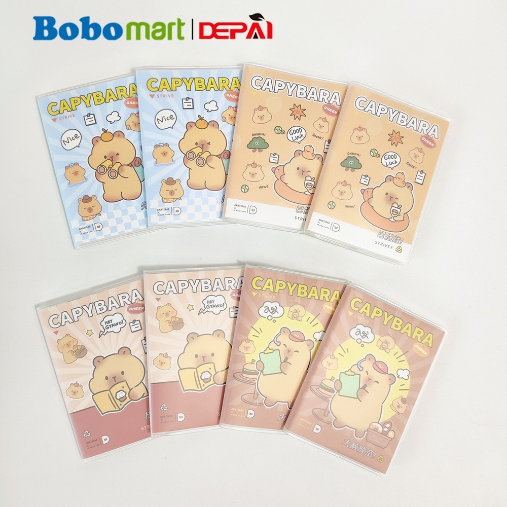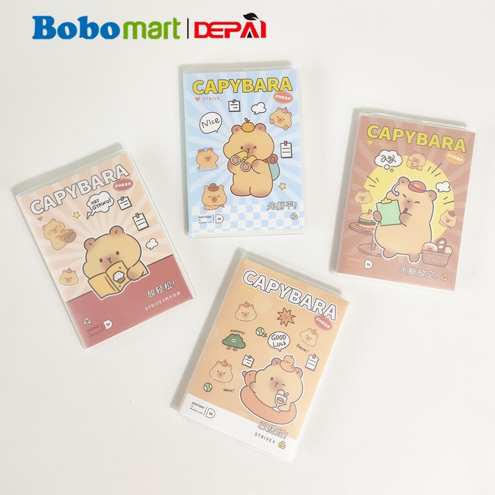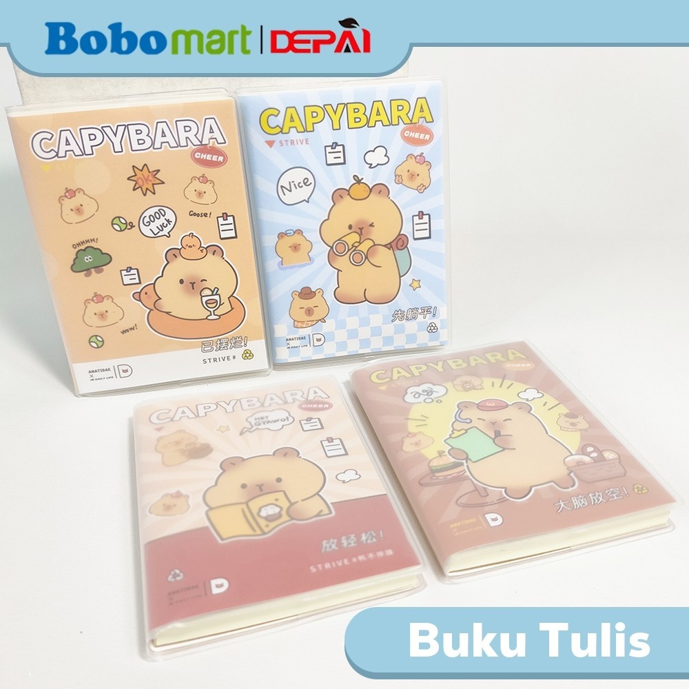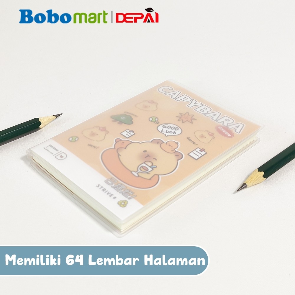 BOBOMART Buku Tulis Catatan Bergaris PVC Cover Ruled Notebook Cappybara A7 64 Lembar DP-1288-26