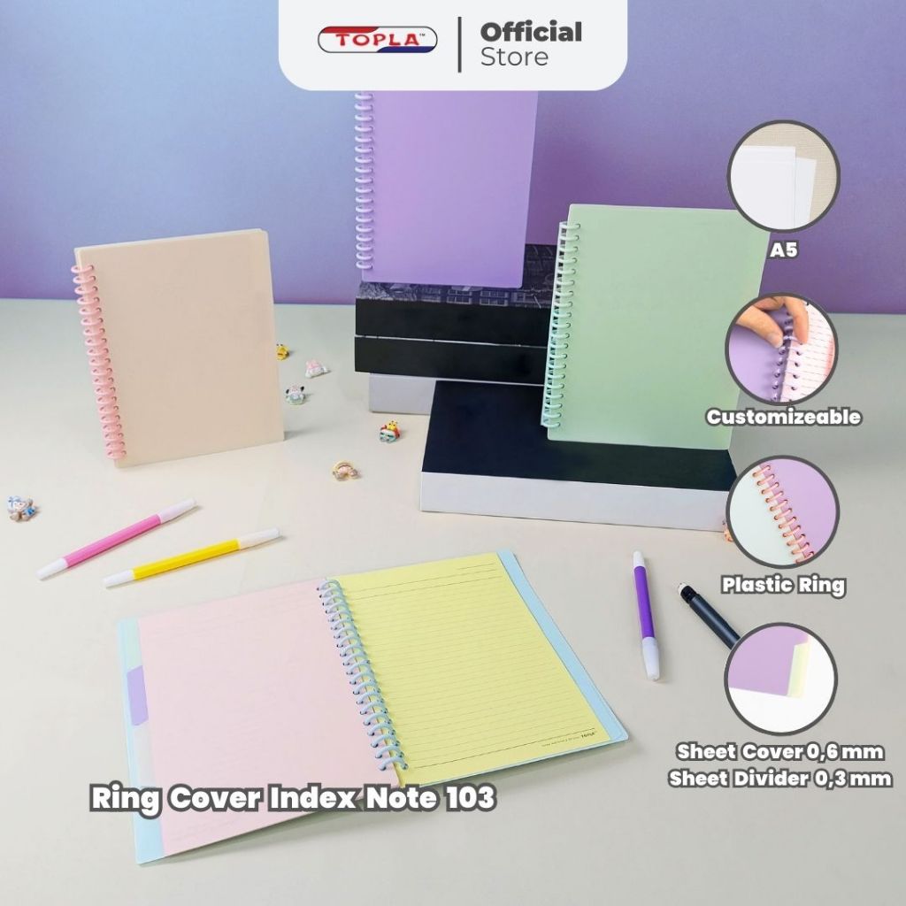 Ring Index Notebook with cover Buku catatan spiral notebook sekolah isi ulang ukuran A5 dan B5 Topla