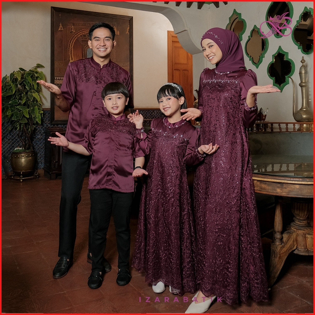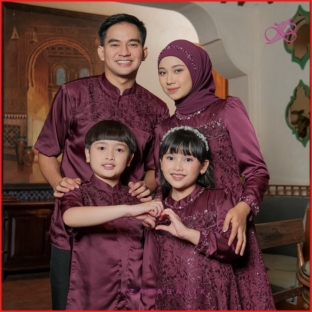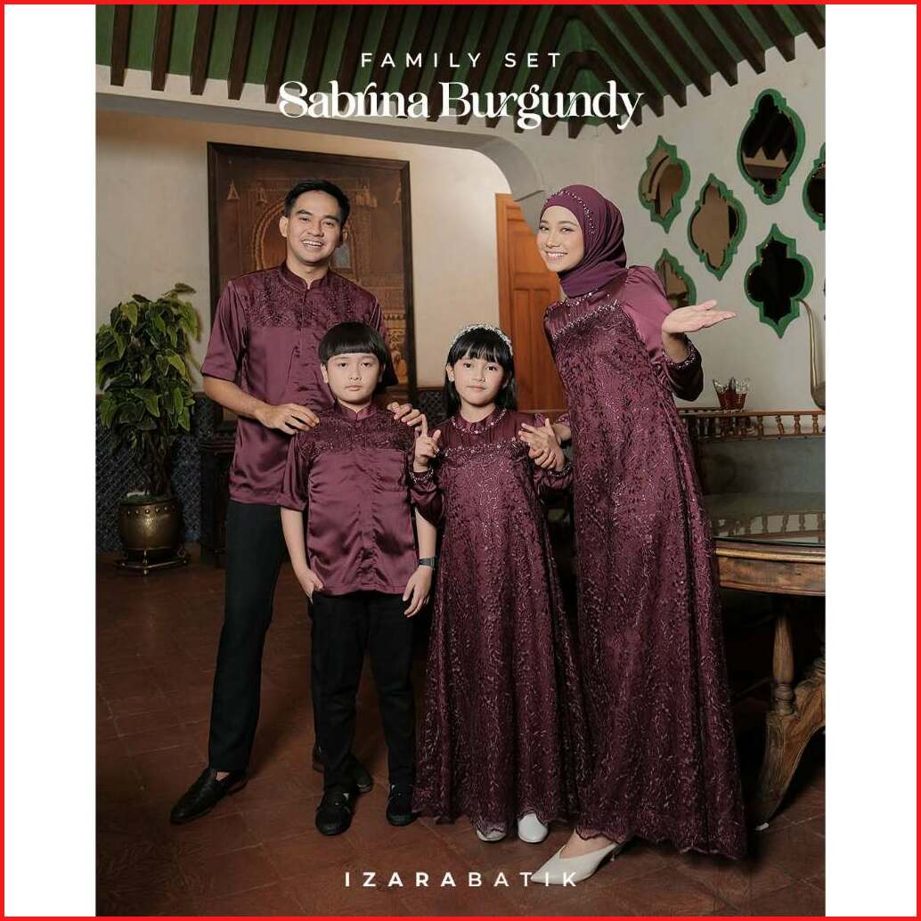 Family Set Dress Sabrina Burgundy - Raya Collection Izarabatik Baju Sarimbit Lebaran 2025 Keluarga Muslim - Dress Gamis