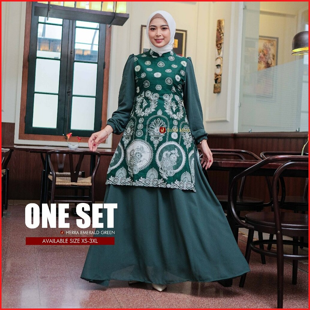 Herra Emerald Green Couple Set Muslim Raya Edition Gamis Premium Dan Kemeja Full Furing