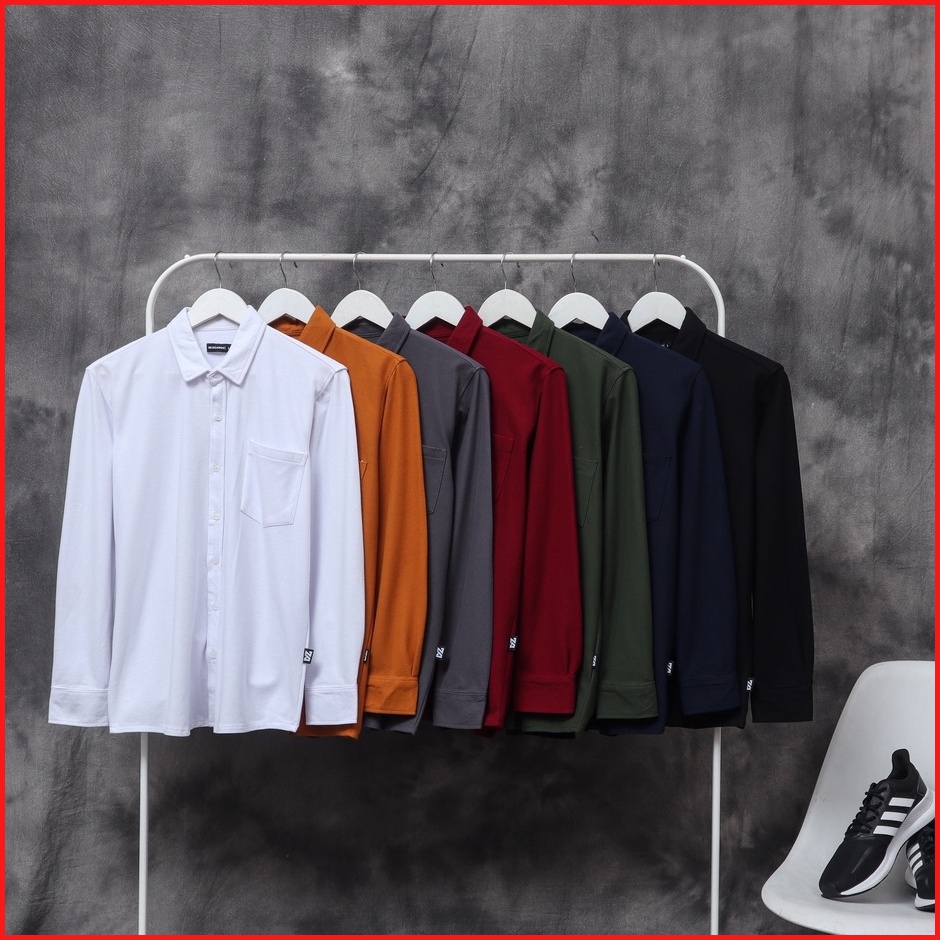 Dzargo Kemeja Polos Pria Lengan Panjang Pique Premium Hitam Putih Army Navy Maroon Dark Mustard Abu-abu Baju Dll