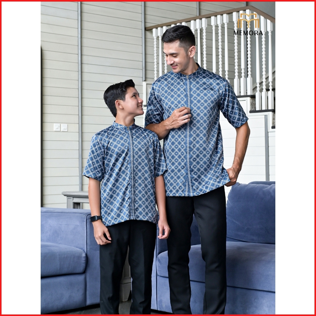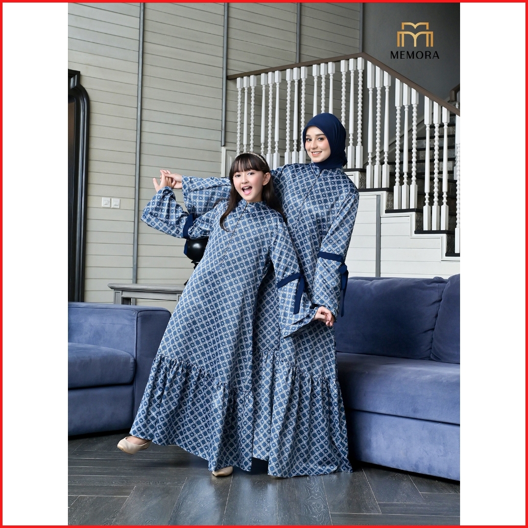 Baju Couple Pasangan Lebaran 2025 Series Kamari Prussian Blue By Memora - Baju Couple Keluarga Lebaran 2025 - Original A