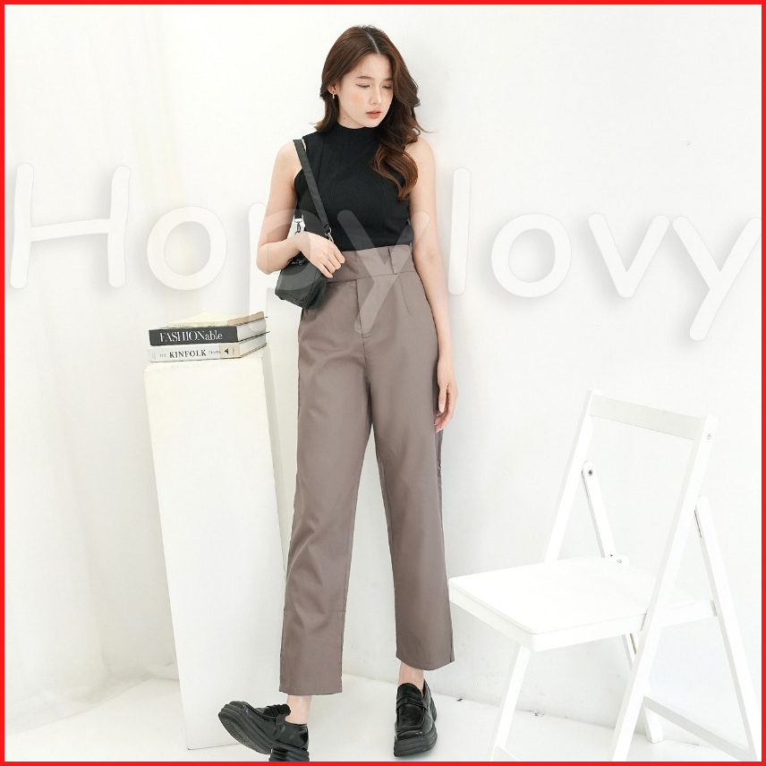 Celana Panjang Wanita Highwaist Pants Celana Wanita Model Baggy Pants Bahan Katun Tissa