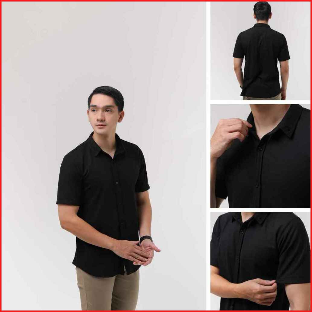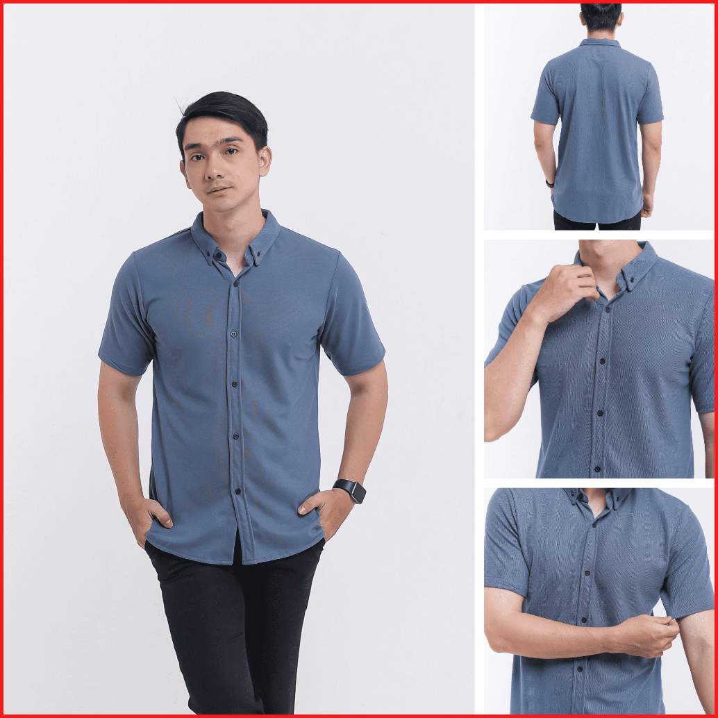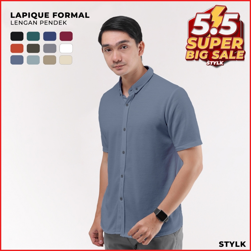 Stylelaki Lapique - Kemeja Denim Pria Formal Lengan Pendek Slim Fit Anti Kusut Nyaman Dan Lembut