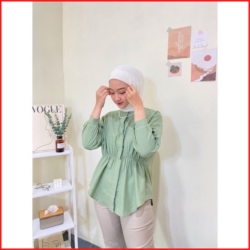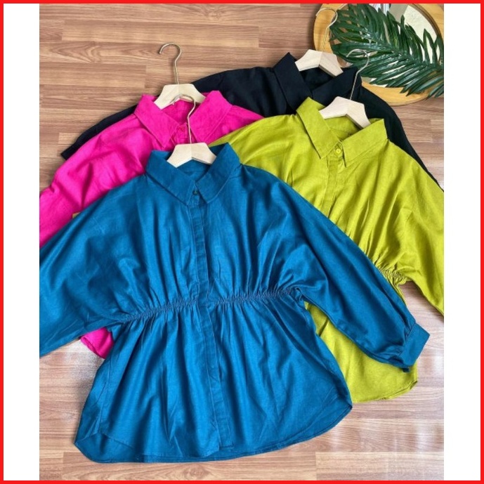 Alya Linen Shirt - Kemeja Oversize Kerut Depan - Kemeja Wanitaterbaru - Kemeja Linen Premium
