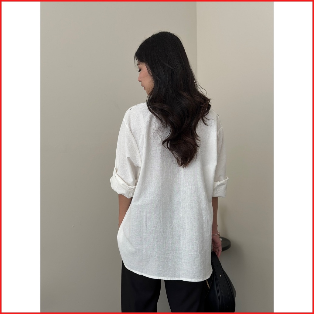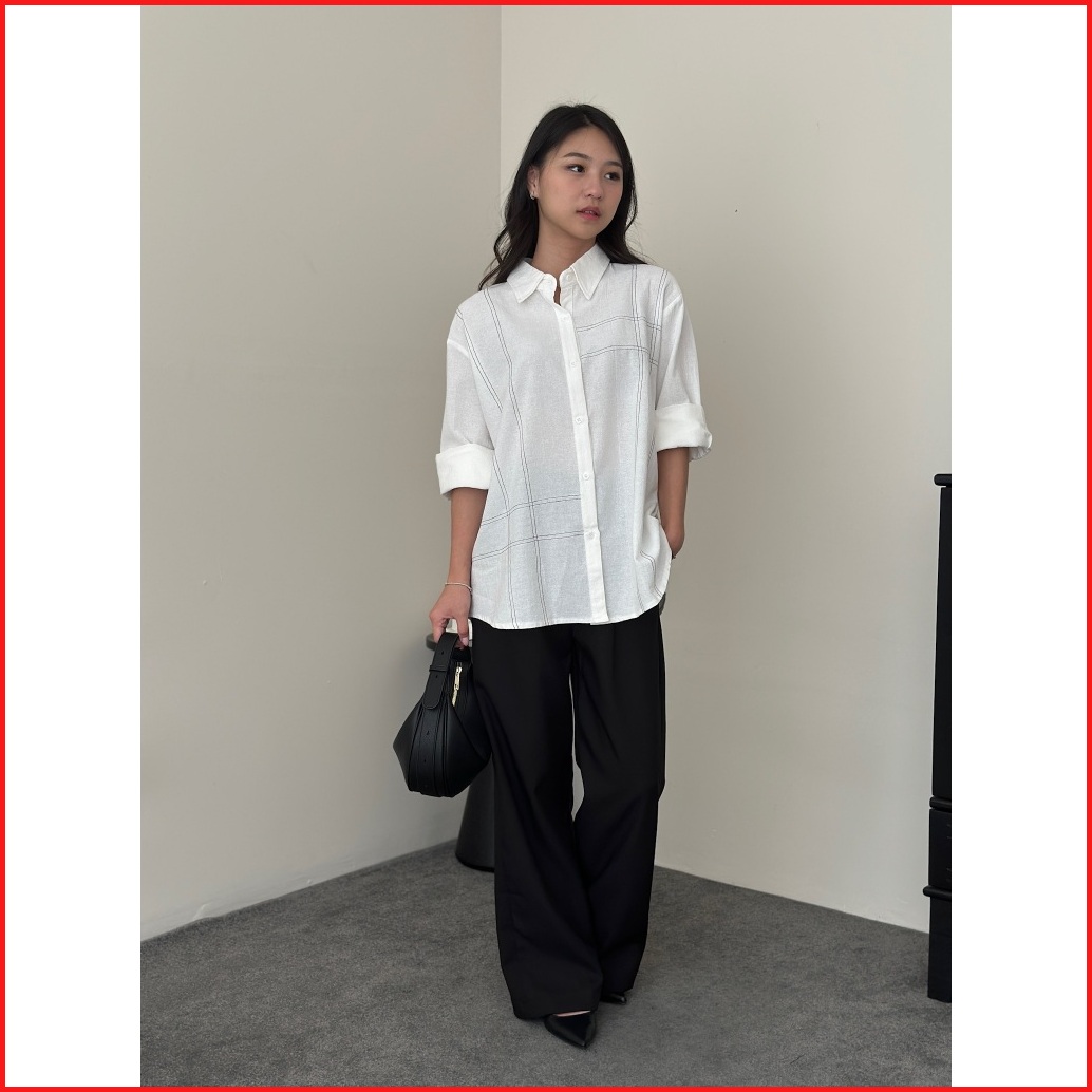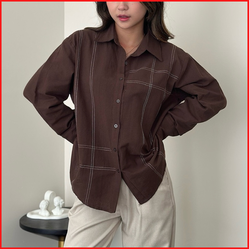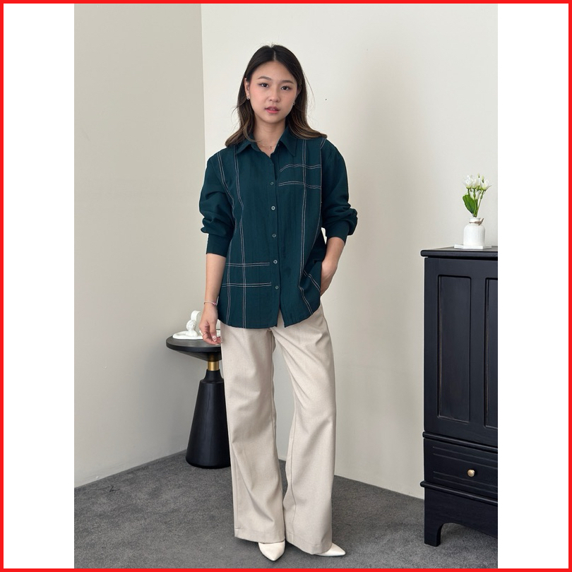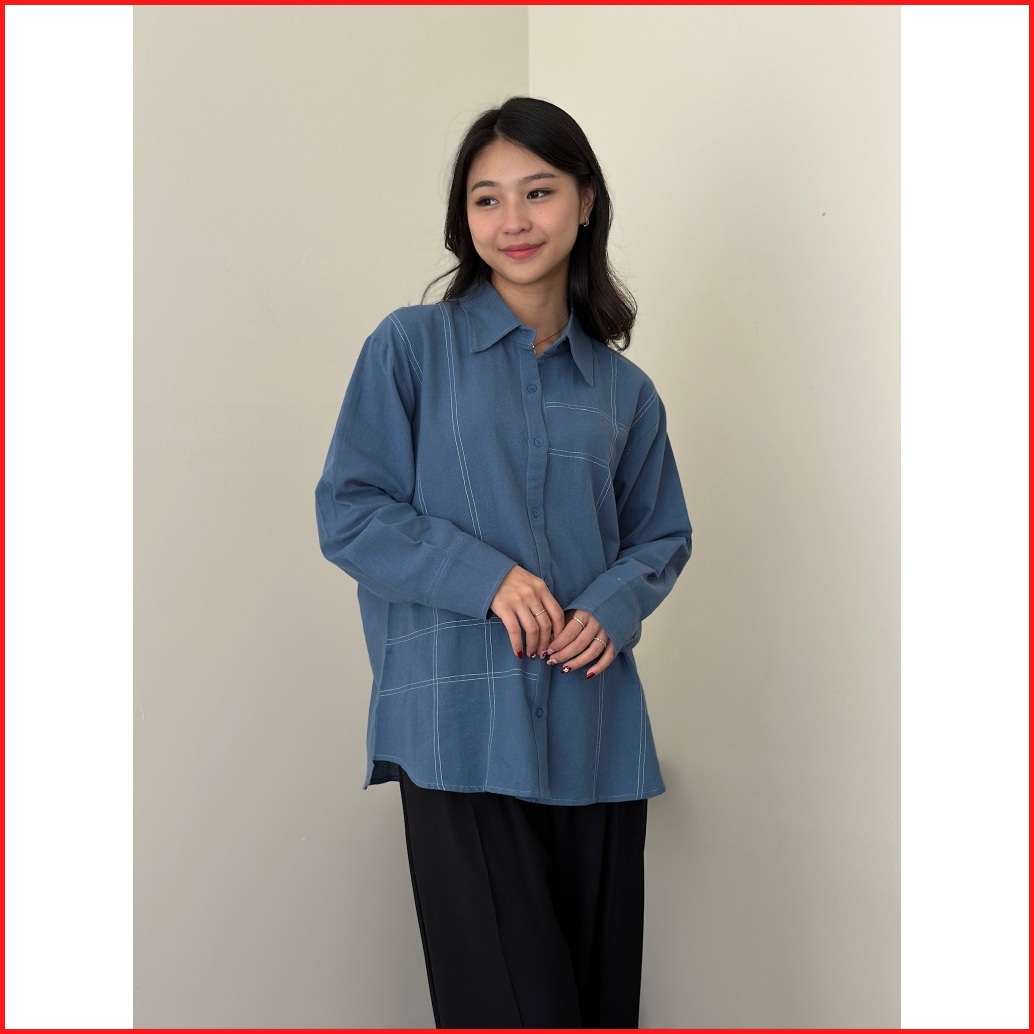 Asoka Twila Shirt 2289 - Contrast Stitch Oversize Blouse Long Sleeve - Atasan Wanita Kemeja