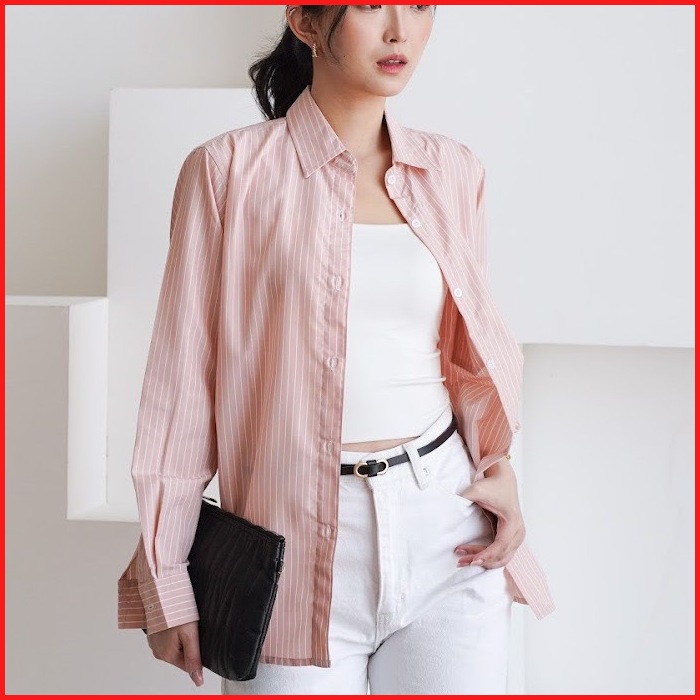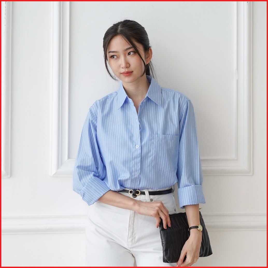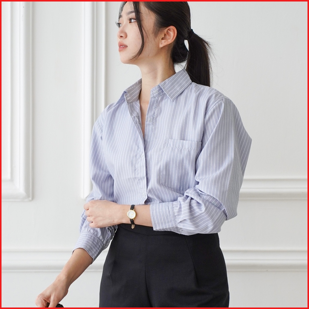 Suzy Shirt Kemeja Salur Wanita Lavvela