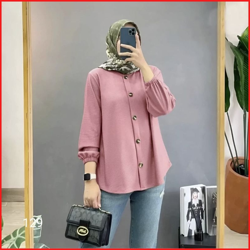 Atasan Wanita Lengan Karet Kekinian Kemeja Wanita Crinkle Airflow Kemeja Wanita Jumbo