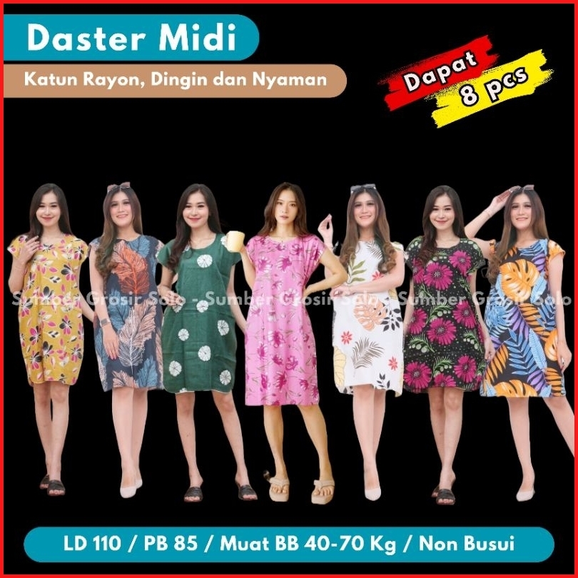 Daster Midi Pendek Selutut Isi 5pcs Dan 8 Pcs Daster Remaja Mama Muda Daster Murah