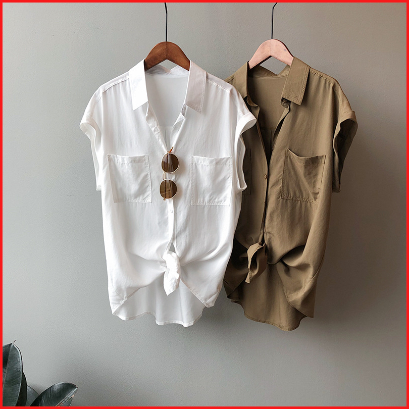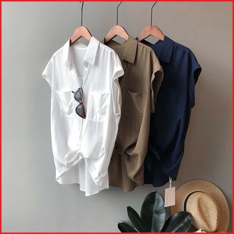 Kemeja Wanita Shimer Top Kemeja Sleeveless Atasan Kemeja S M L Xl Xxl