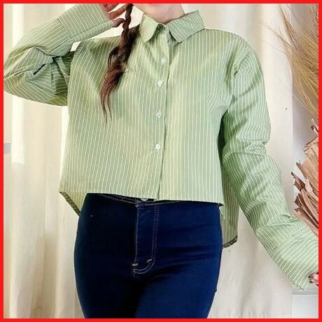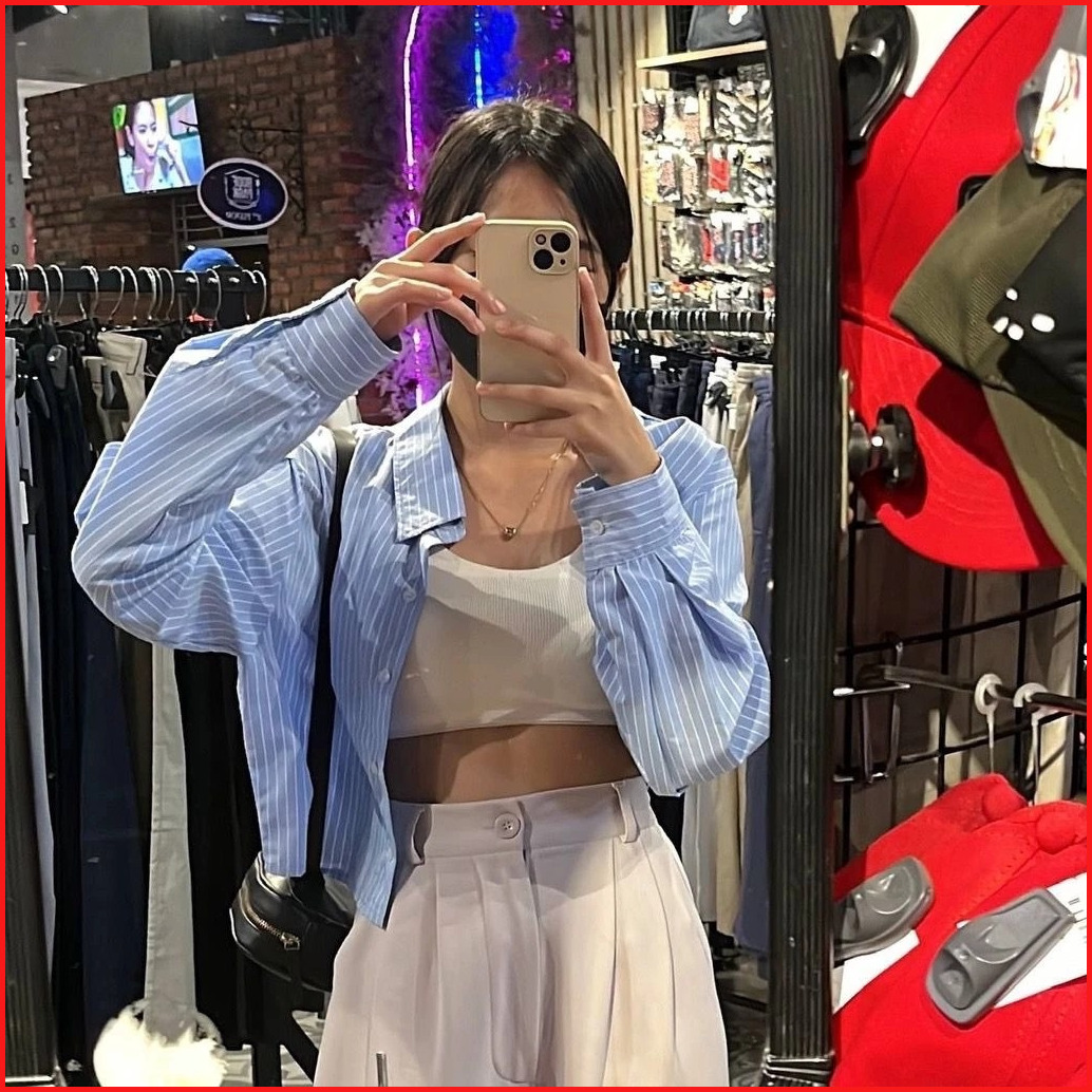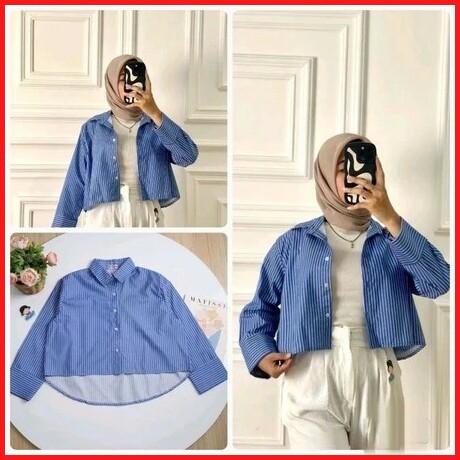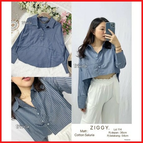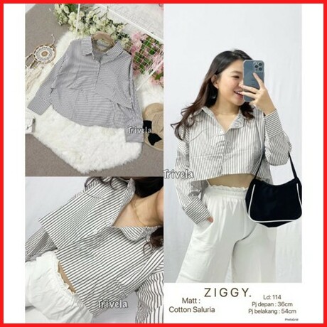 Ziggy Top Stripe Shirt - Kemeja Salur Garis Oversized Crop Shirt Atasan Wanita Lengan Panjang