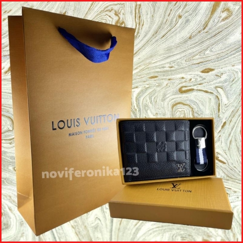 Dompet Pria Kulit Import 1 Set Paperbag Dan Gantungan Kunci