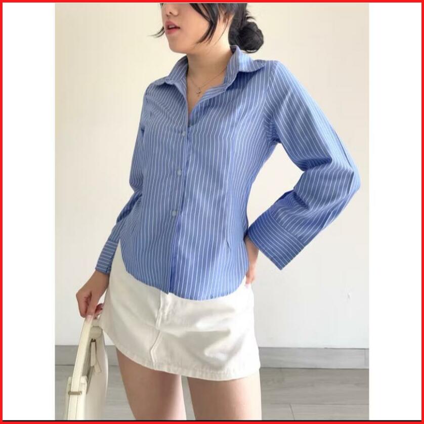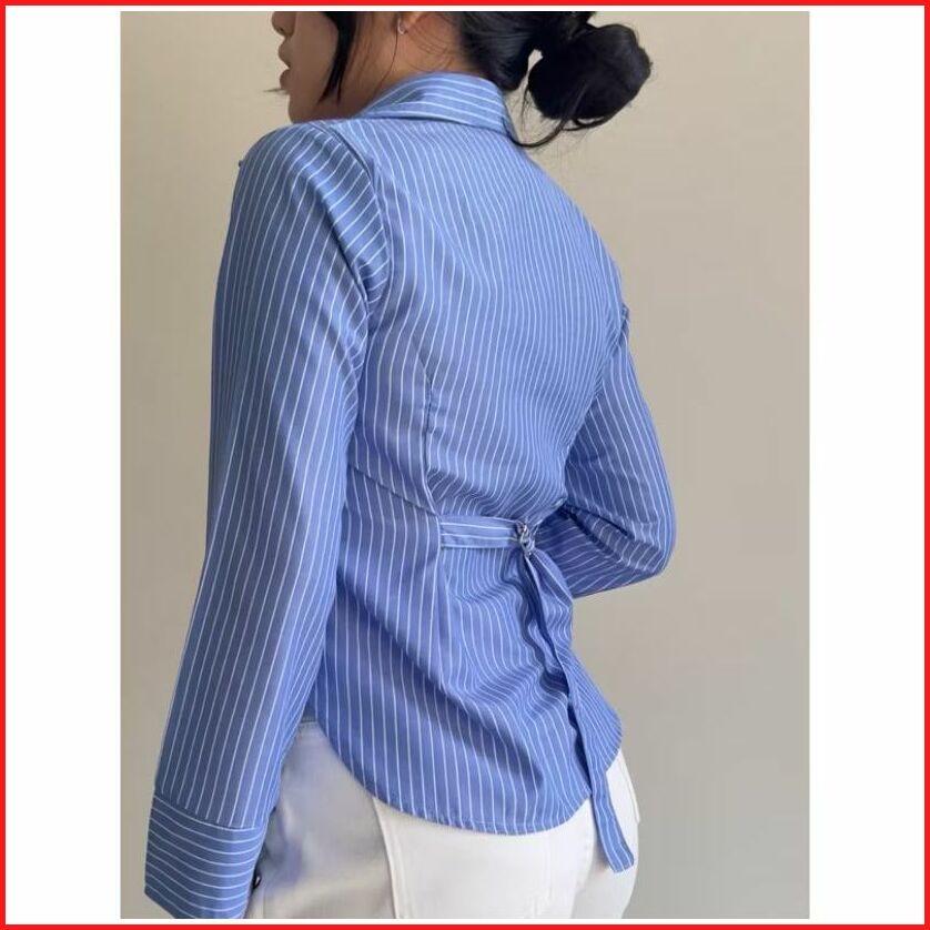 Kezia Slim Fitted Striped Shirt Kemeja Kerja Salur Kemeja Kantor