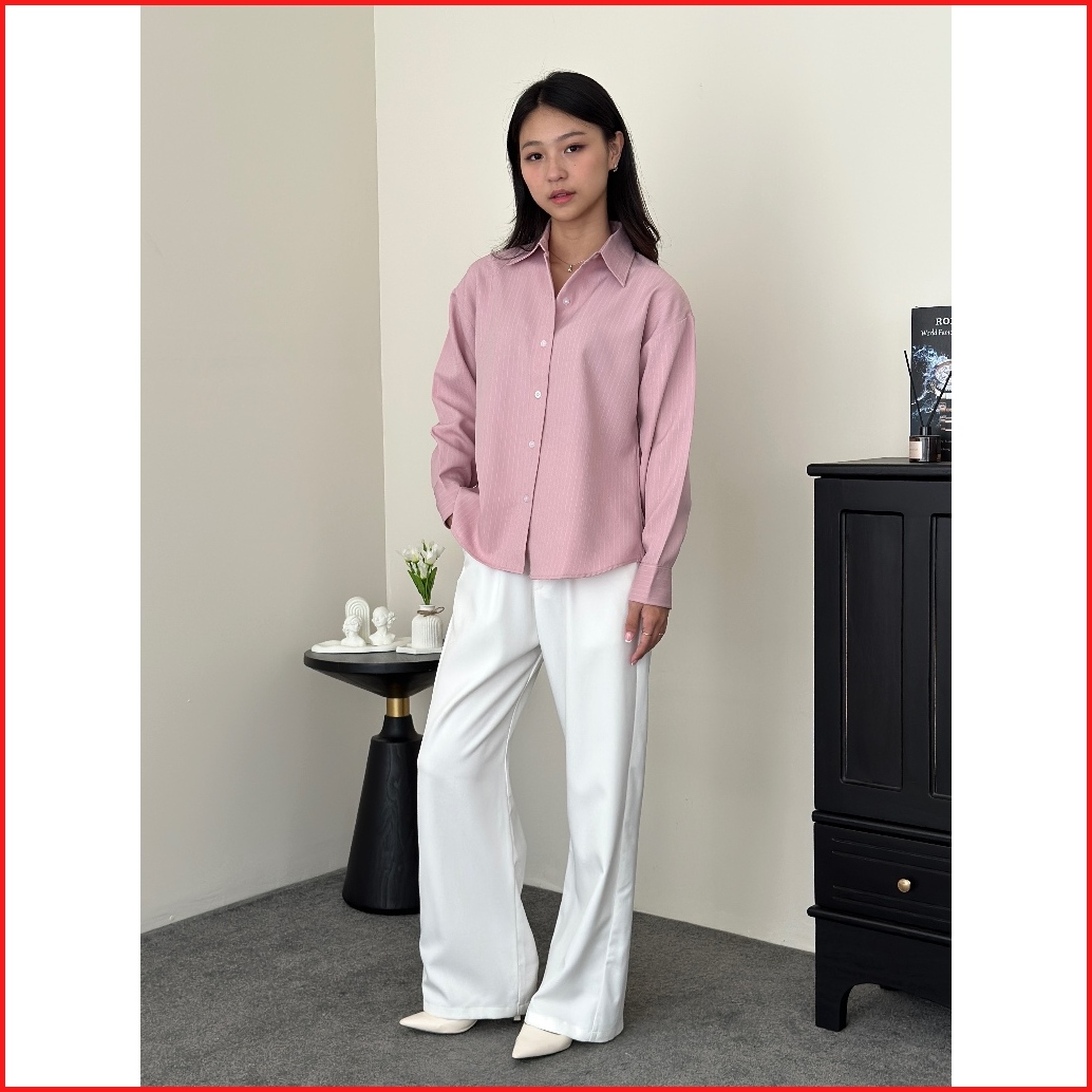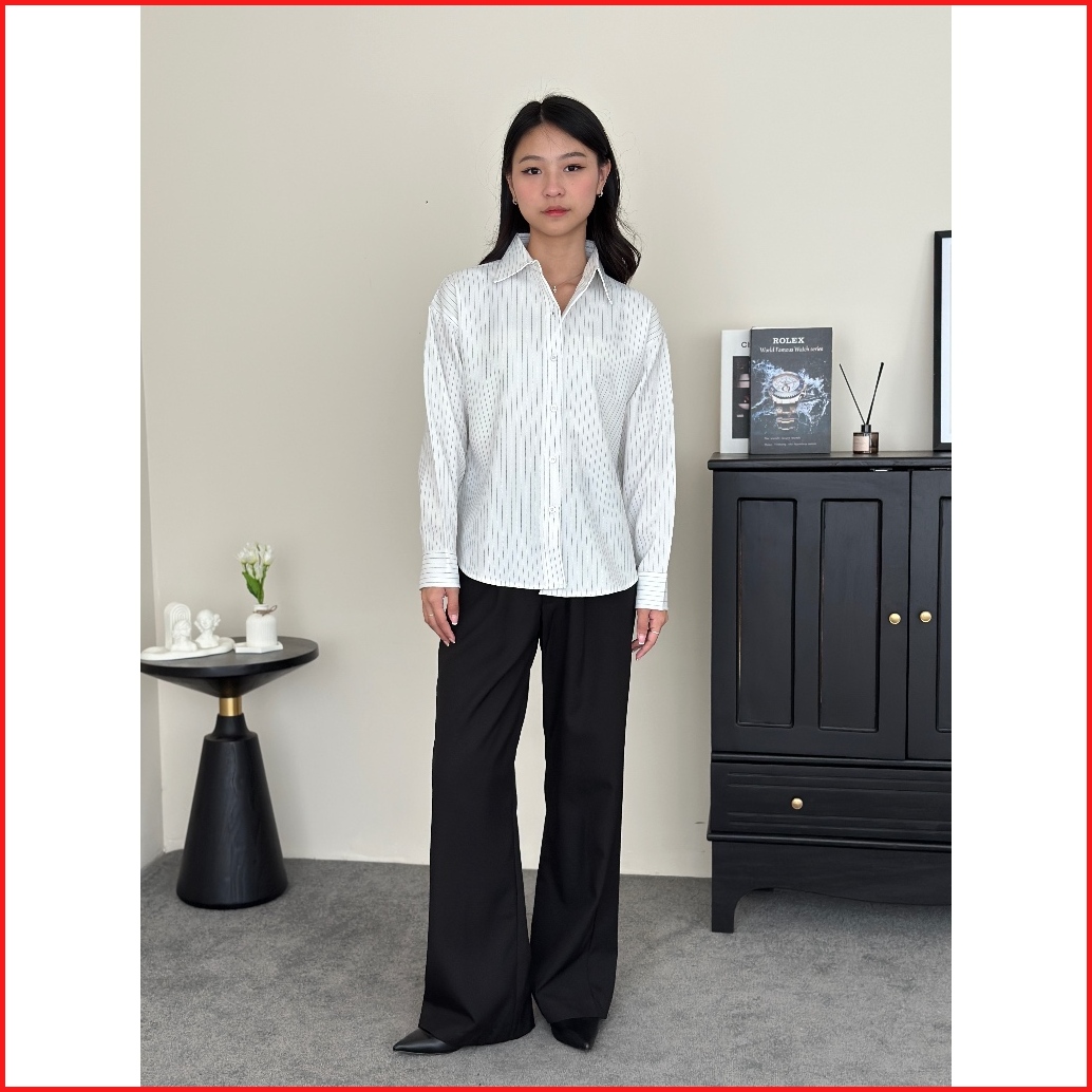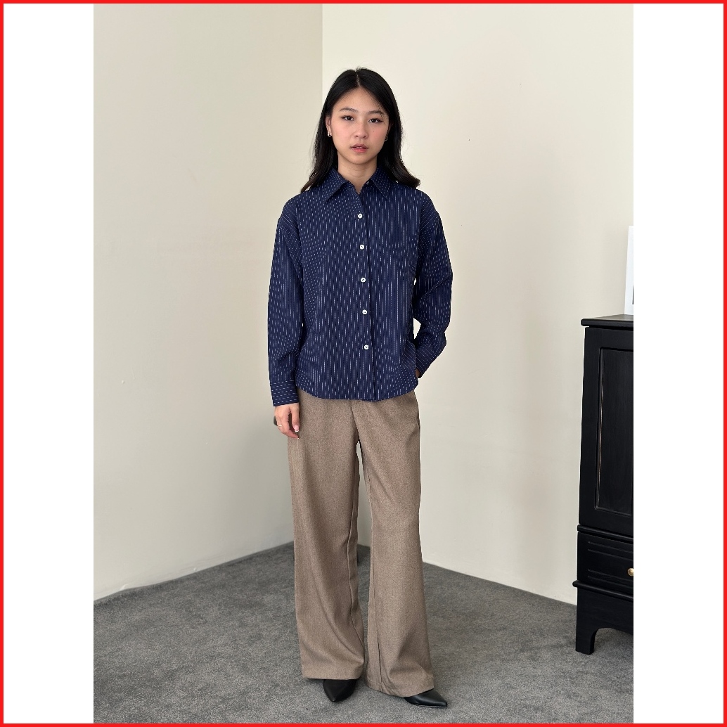 Asoka Kathy Shirt 880 - Women Striped Collar Shirt Long Sleeve - Atasan Kemeja Wanita Flowly