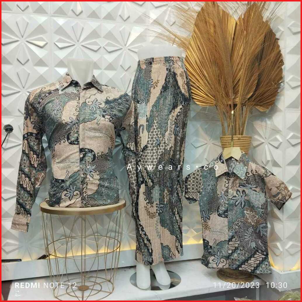 Aywears- Batik Couple Kemeja Batik Lengan Panjang Batik Keluarga Couple Kemeja Seragaman Rok Prisket